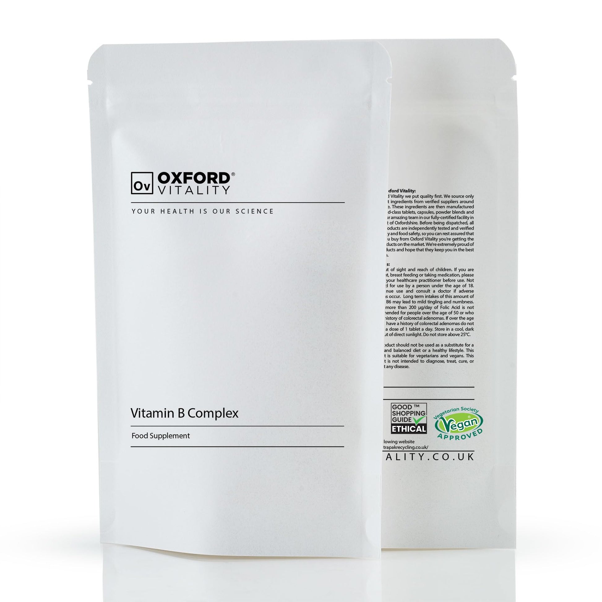 Ov OXFORD VITALITY Vitamin B Complex Tablets - Full Spectrum One a Day B Vitamin Supplements - Vitamins B1, B2, B3, B5, B6, B12, D-Biotin, inositol and Folic Acid by Oxford Vitality