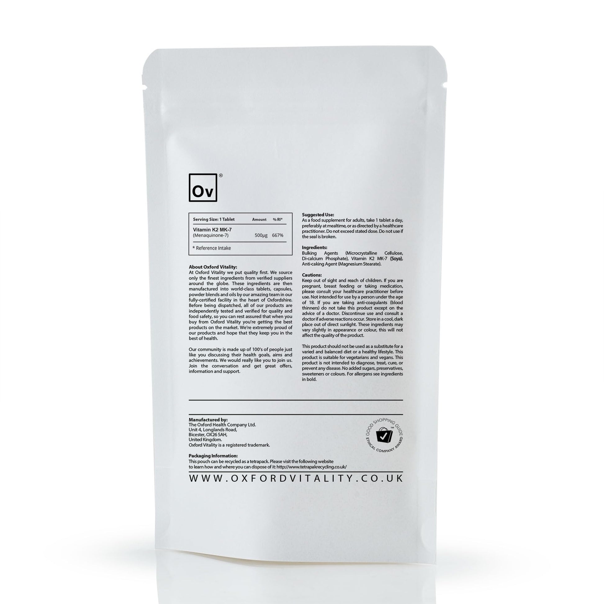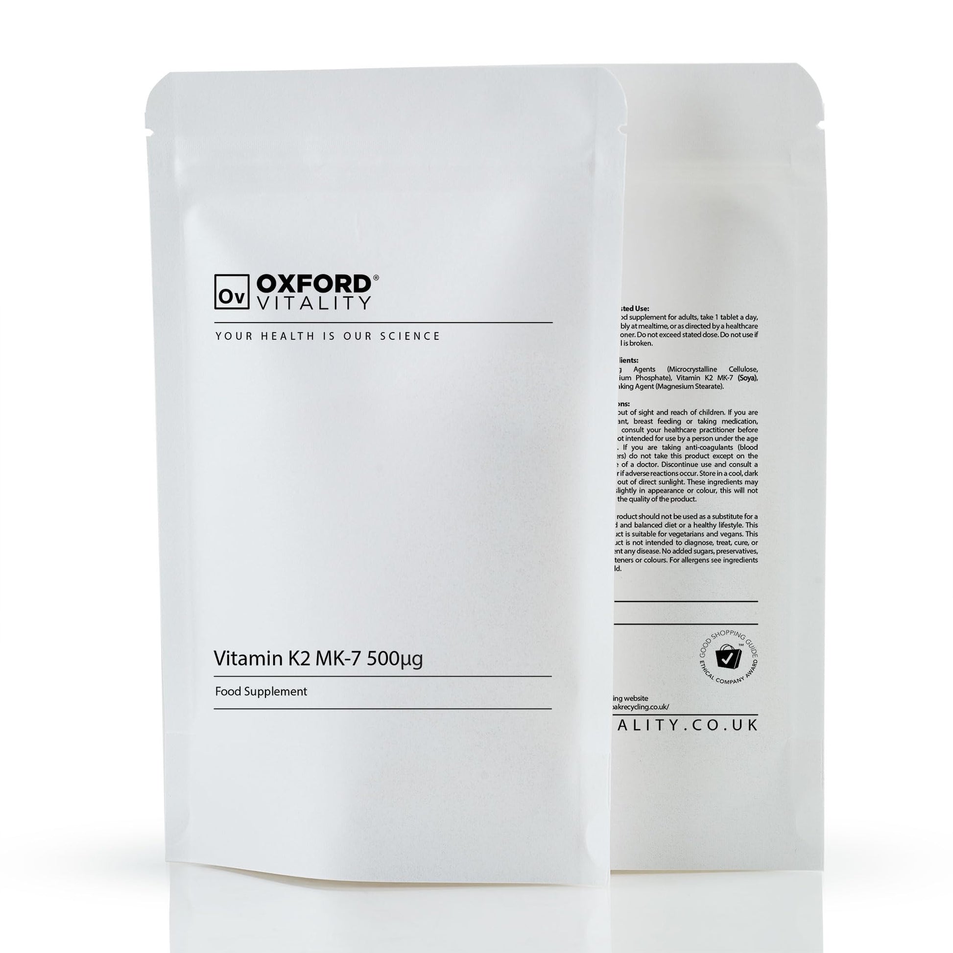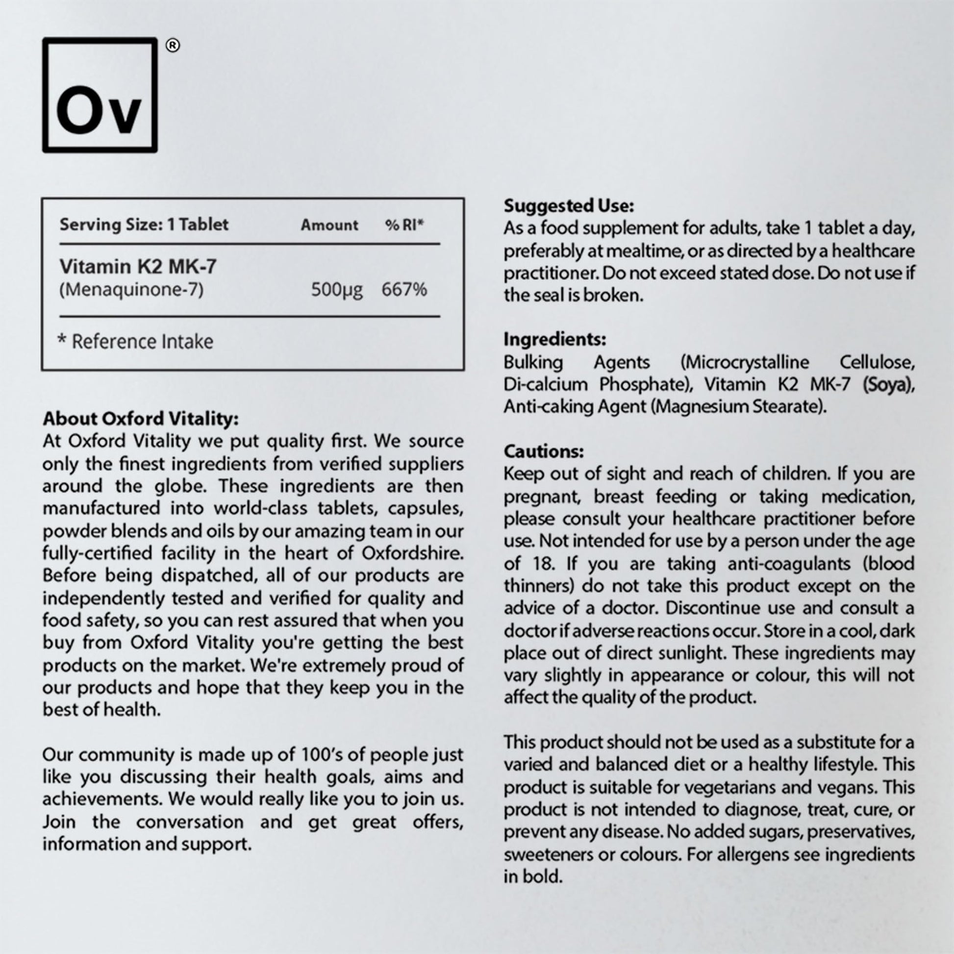 Ov OXFORD VITALITY Vitamin K2 MK-7 | High Strength 500µg Tablets for Blood and Bone Health | Oxford Vitality