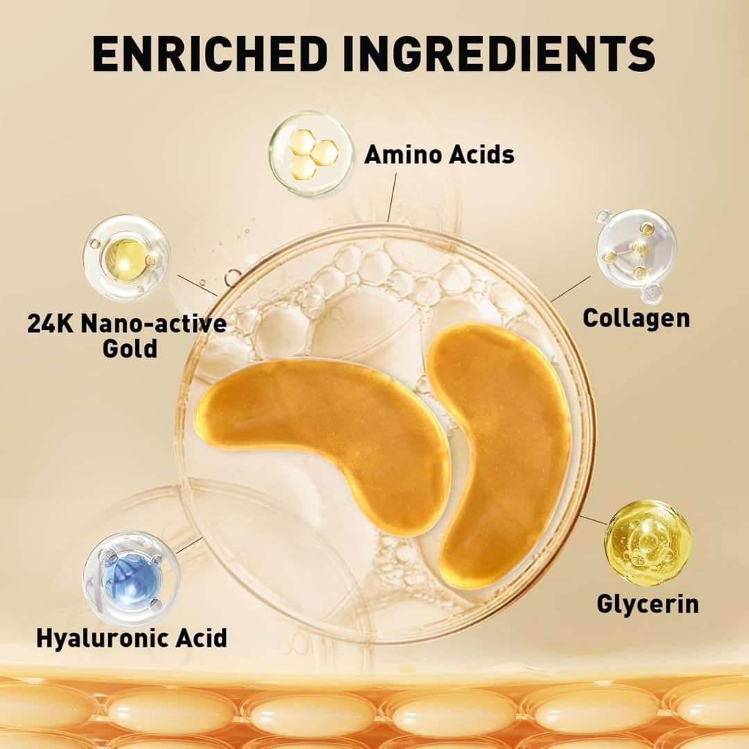 Benefits of Ovala 24K Under Eye Patches Brightens Complexion: Reduces darkness, puffiness, and fine lines around the eyes. Deep Hydration: Provides intense hydration and moisture to the under-eye area. Improves Firmness & Elasticity: Enhances skin firmness and elasticity, giving a youthful appearance. Youthful Eyes: Keeps the eye area looking brighter and younger. Versatile Use: Can be applied to other areas such as the forehead, around the mouth, and neck. How to Use Thoroughly clean your face with warm water. Apply the eye patches under your eyes. Leave on for 15-20 minutes, then remove. Gently massage the skin around your eyes to aid absorption. Use 2-3 times a week for optimal results. Package Contents 16 x Under Eye PatchesMore Info