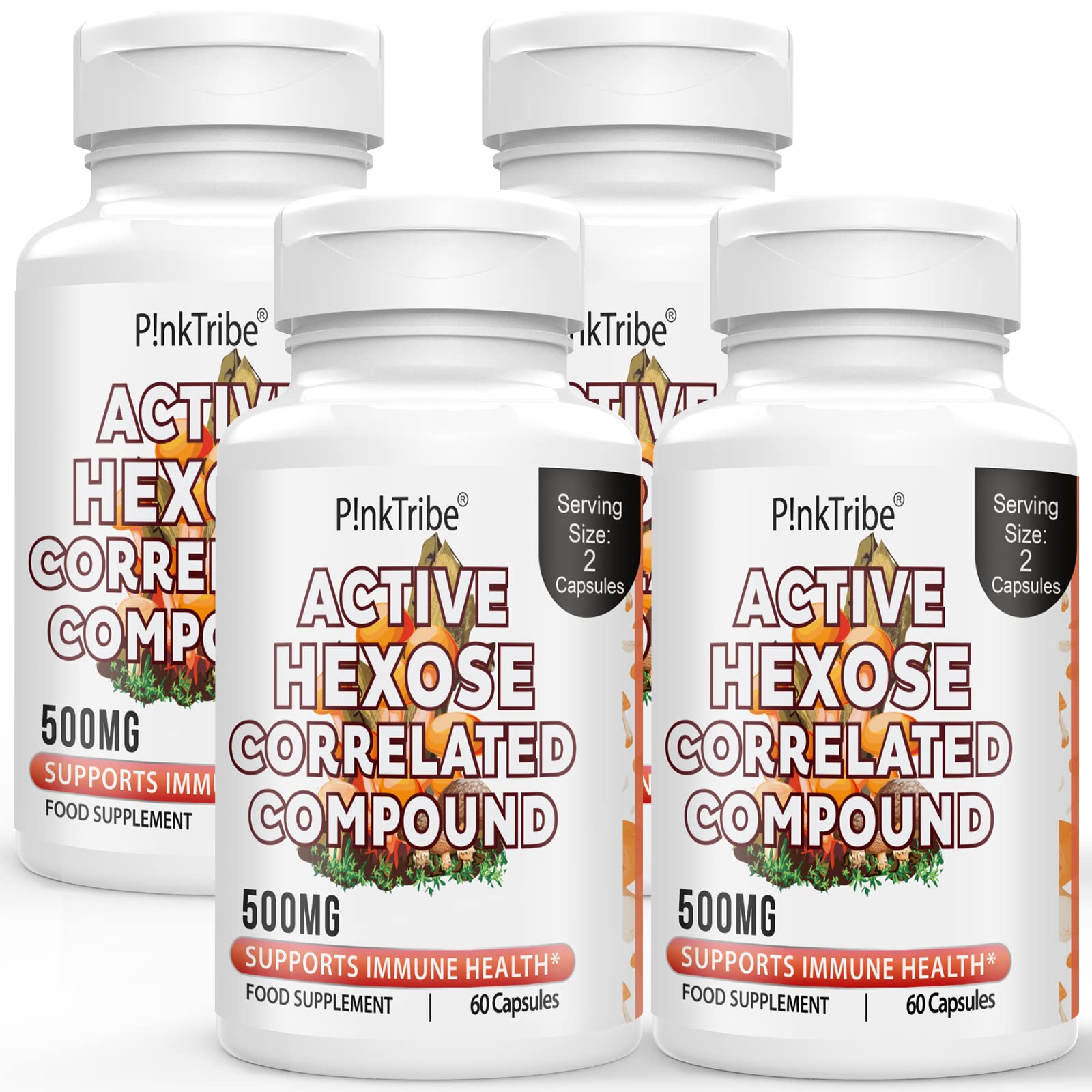 P!nkTribe Active Hexose Correlated Compound 500mg - Supports Immune Health, Liver Function & T-Cell/Natural Killer Cell Activity - 240 Veggie Capsules (Pack of 4)