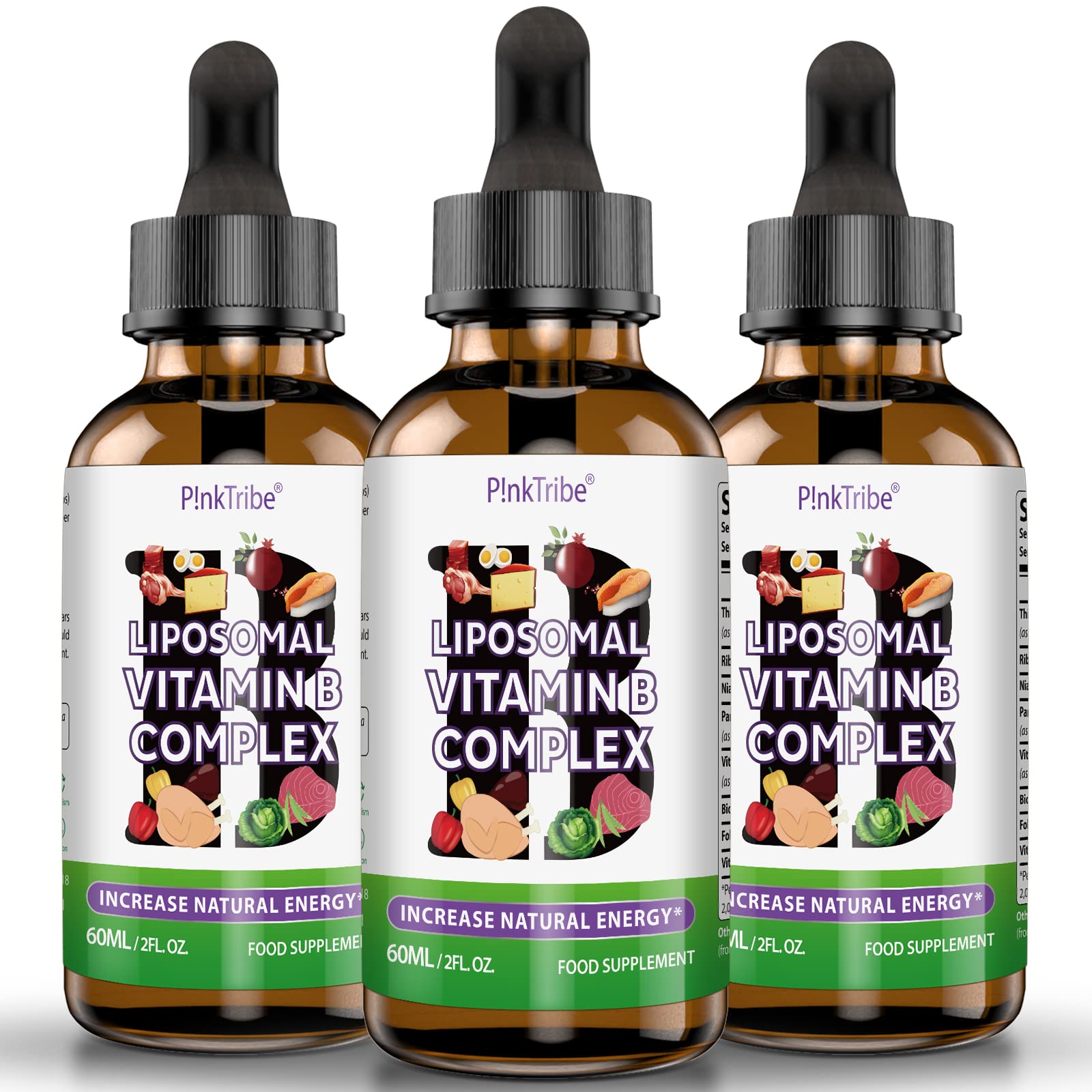 P!nkTribe Liposomal Vitamin B Complex Liquid Drops - 60ml, High Potency B Vitamin Supplement for Energy Support & Nervous System Health (Pack of 3)