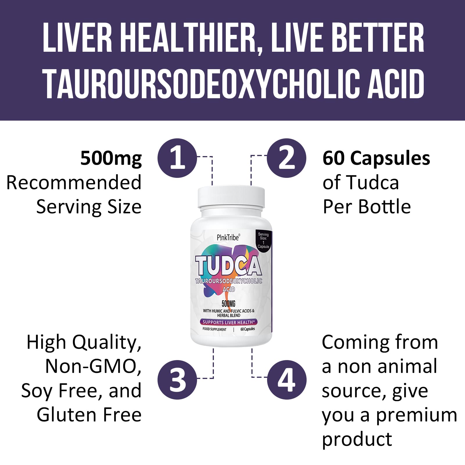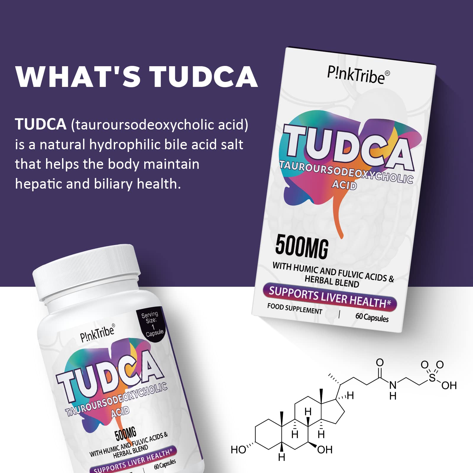 P!nkTribe TUDCA 500mg, Tauroursodeoxycholic Acid with Humic and Fulvic Acids, Beet Root and More, Tudca Bile Salt Supplement for Liver Liver Health, Digestion, Detox and Repair (Pack of 3)