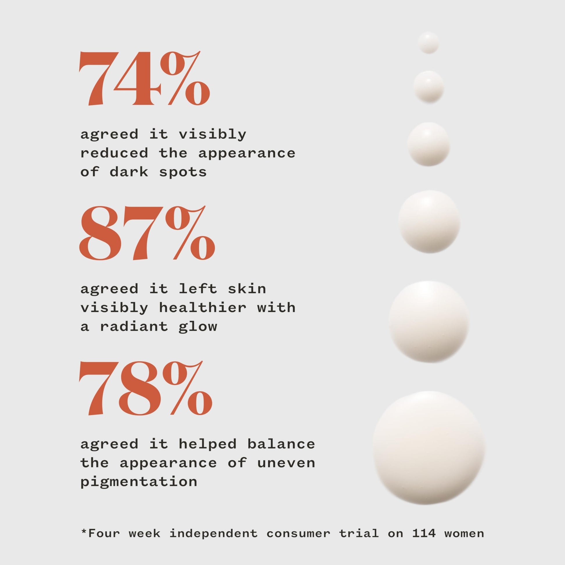 A game-changing serum designed to help fade the appearance of hyperpigmentation, and keep new dark spots from forming. All without the use of exfoliating acids, which can leave skin vulnerable to irritation. Proven to reduce the appearance of dark spots in four weeks, with instantly brighter results.More Info