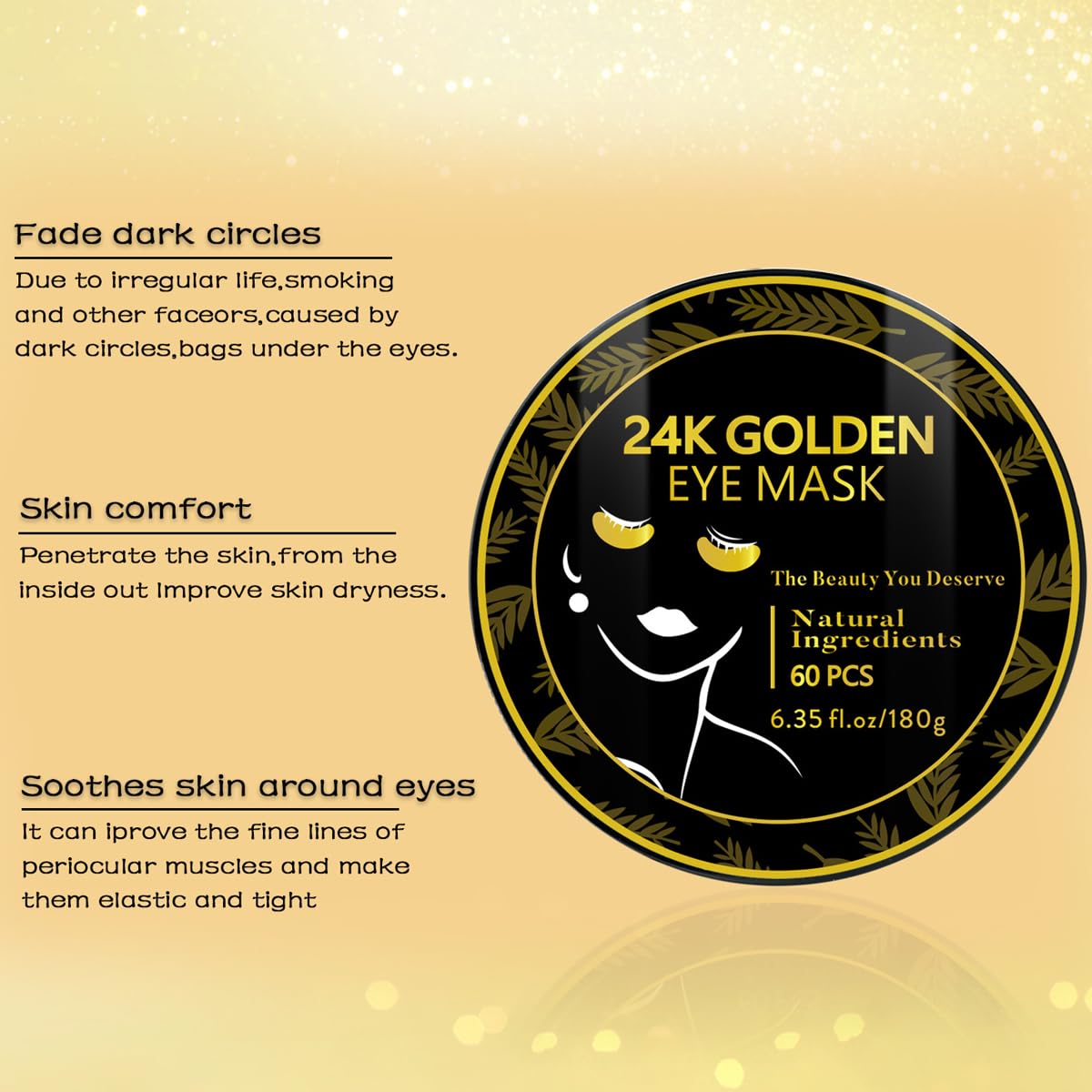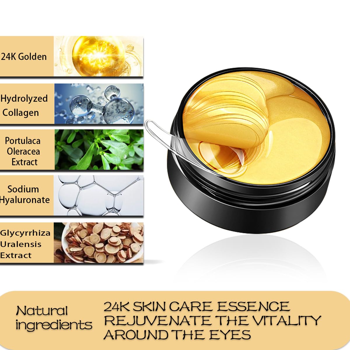 24K Gold Under Eye Mask,60 Pcs Under Eye Patches,30 Pairs Collagen Hydrating Gel Pads,Removing Dark Circles,Puffiness for Men and WomenMore Info