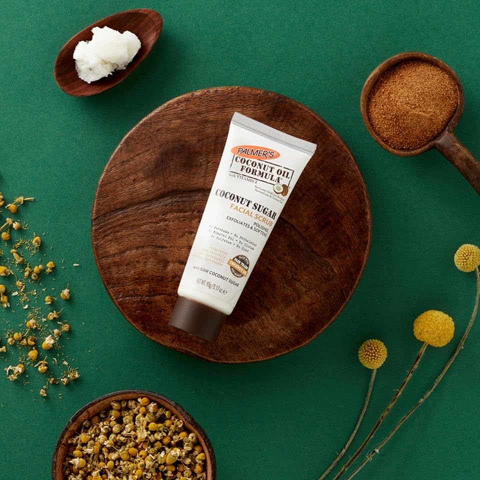 Palmer's Coconut Oil Formula Facial Care Set with Vitamin E – Includes Raw Coconut Sugar Facial Scrub 90g, Facial Moisturiser 50g, and Facial Oil 30ml for Smooth, Radiant, and Hydrated Skin | 3 Pack