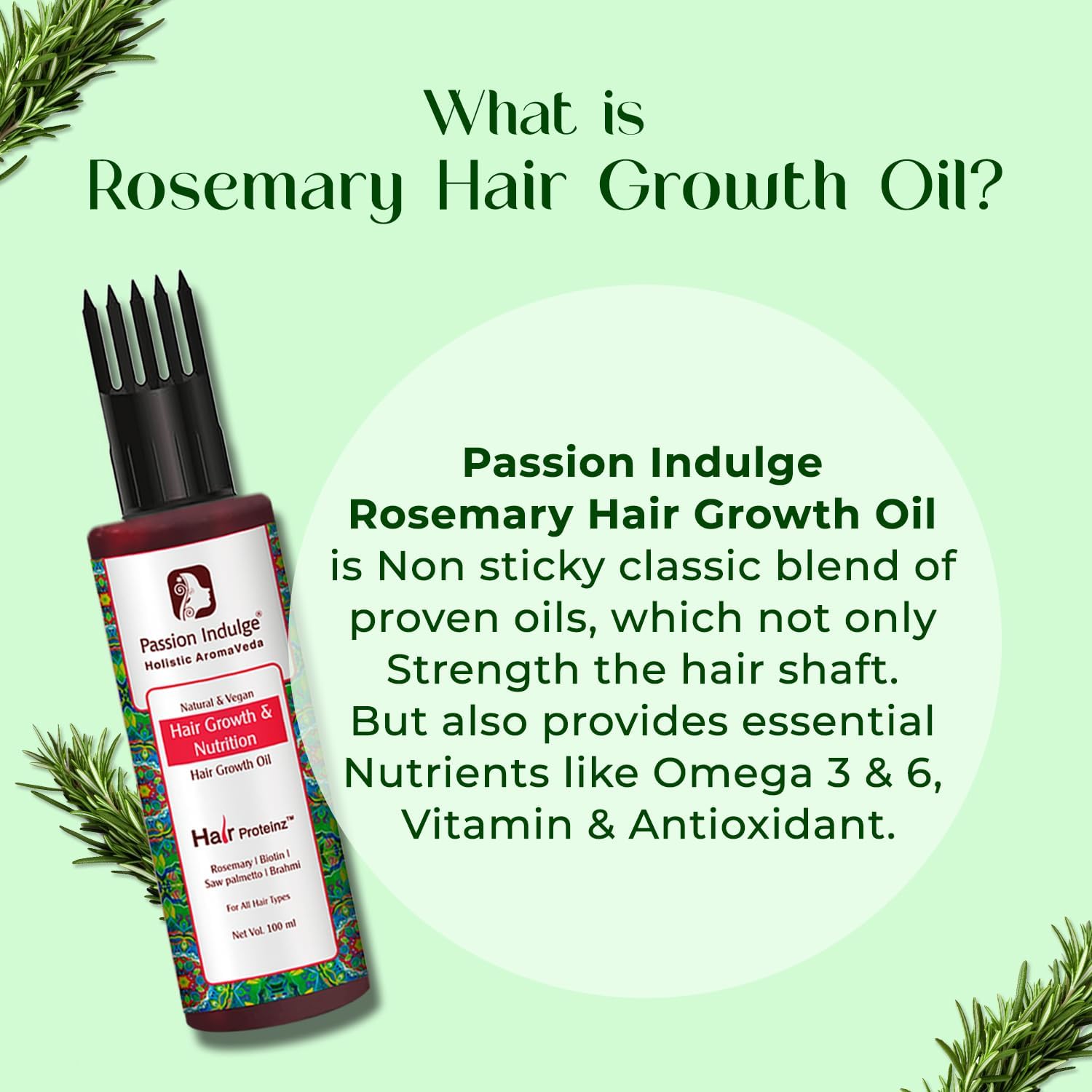 Passion Indulge Hair Proteinz Rosemary Hair Growth Oil with Biotin | Reduce Hair Fall & Hair Breakge - 100 ml | Suitable for all type Hair