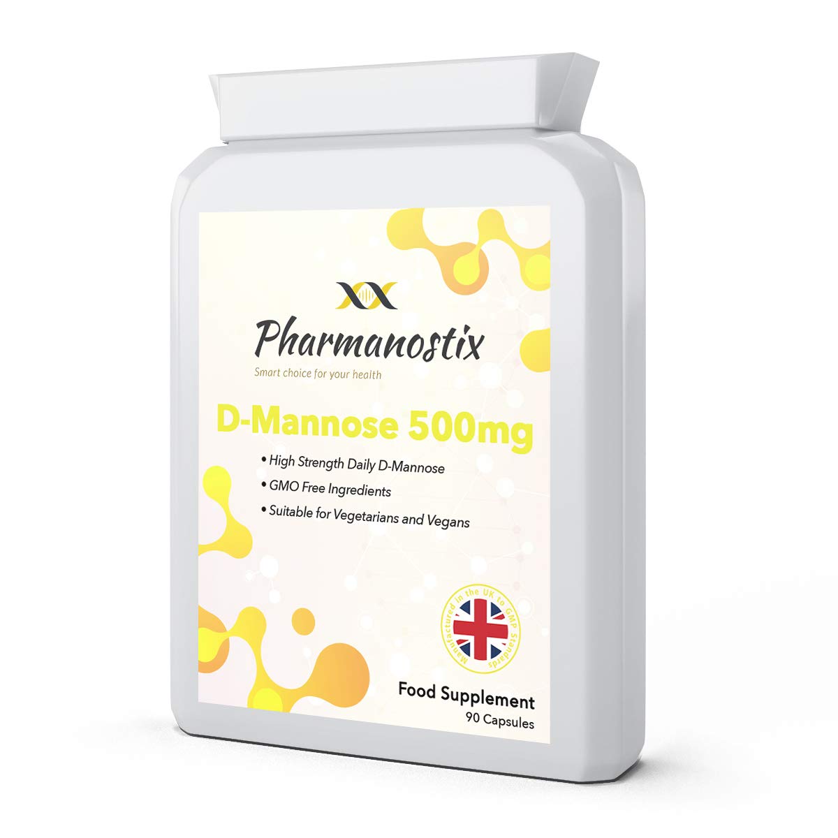 Pharmanostix D-Mannose 500mg Per Capsule – High Strength Daily Serving (1500mg) – 90 Vegan Friendly Capsules (Not Tablets) – 100% Natural Premium D Mannose – Suitable for Vegans – Made in The UK