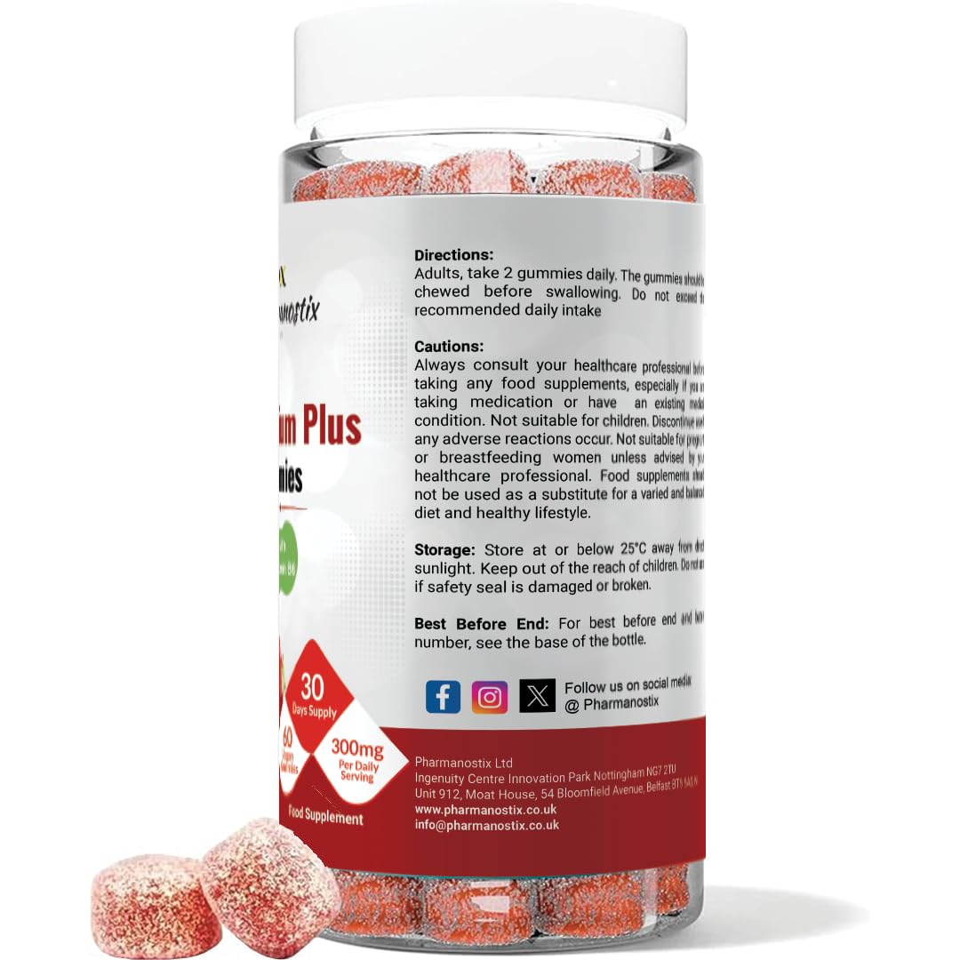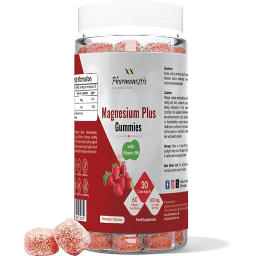 Pharmanostix Magnesium Citrate Gummies Plus 300mg, with Vitamin B6, 60 Vegan Gummies, Supports Muscle, Immunity, Electrolyte Balance, and Energy.
