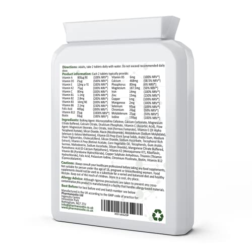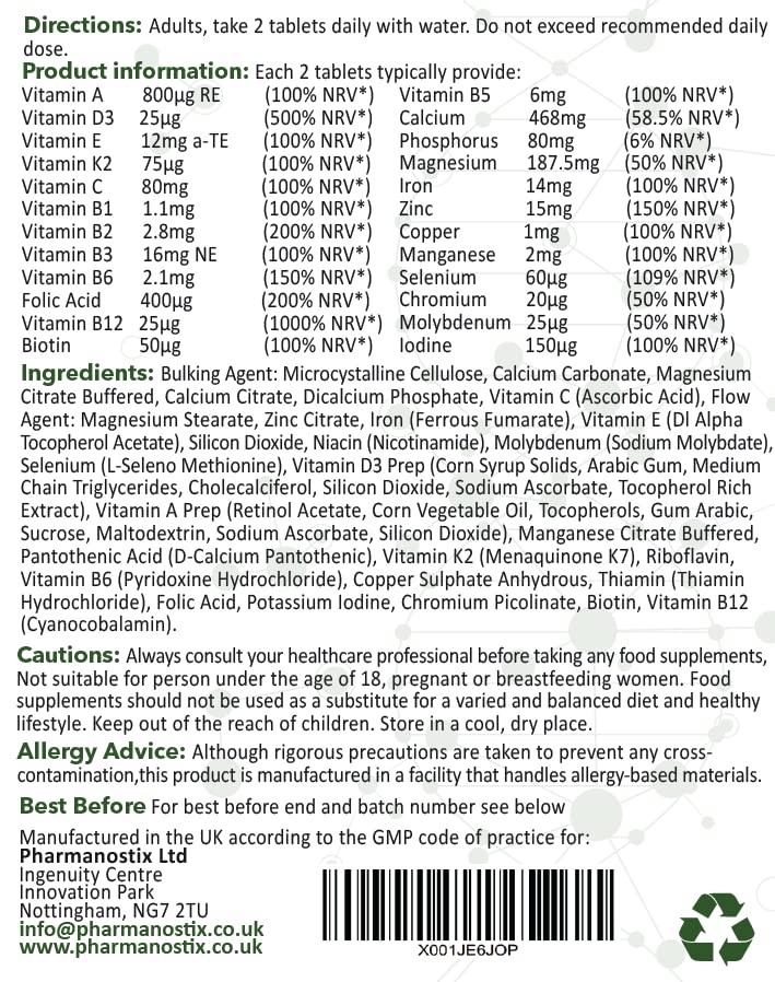 Pharmanostix Vegan Multivitamin and Mineral Supplement 60 Tablets | 24 Vitamins and Minerals | Support Immune Function and Reduce Fatigue | UK Manufactured to GMP Standard
