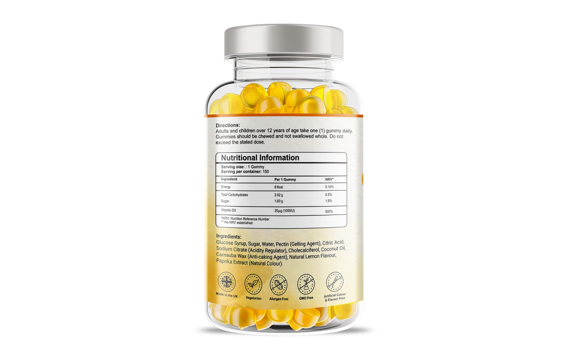 - ✅ EFFECTIVE: Vitamin D3 is essential for maintaining healthy bones and teeth, supporting the immune system, and aiding in absorbing calcium and phosphorus. Each bottle contains 150 delicious gummies (5 month’s supply) that are free from artificial colours and flavours, just great tasting lemon flavour gummies formulated by healthcare professionals.