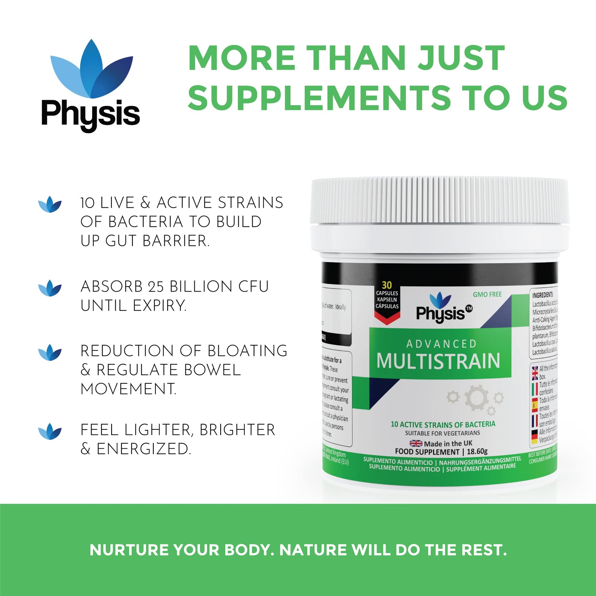 Physis Advanced Multistrains is encased in a gelatine capsule and not suitable for vegetarian and vegans.