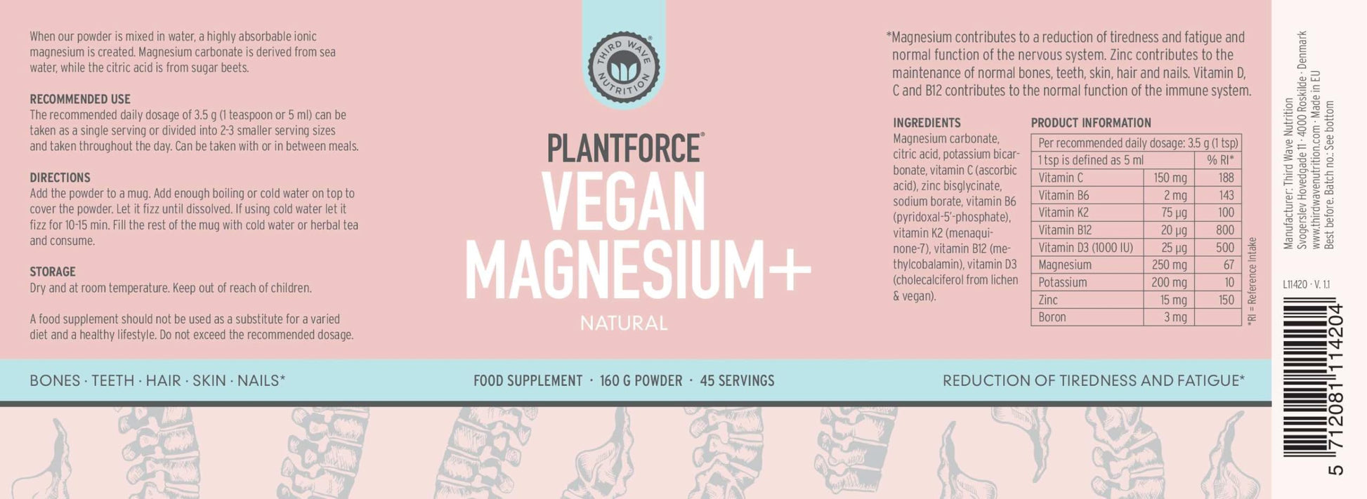 Plantforce Vegan Magnesium+ Natural 160G Powder - 45 Servings