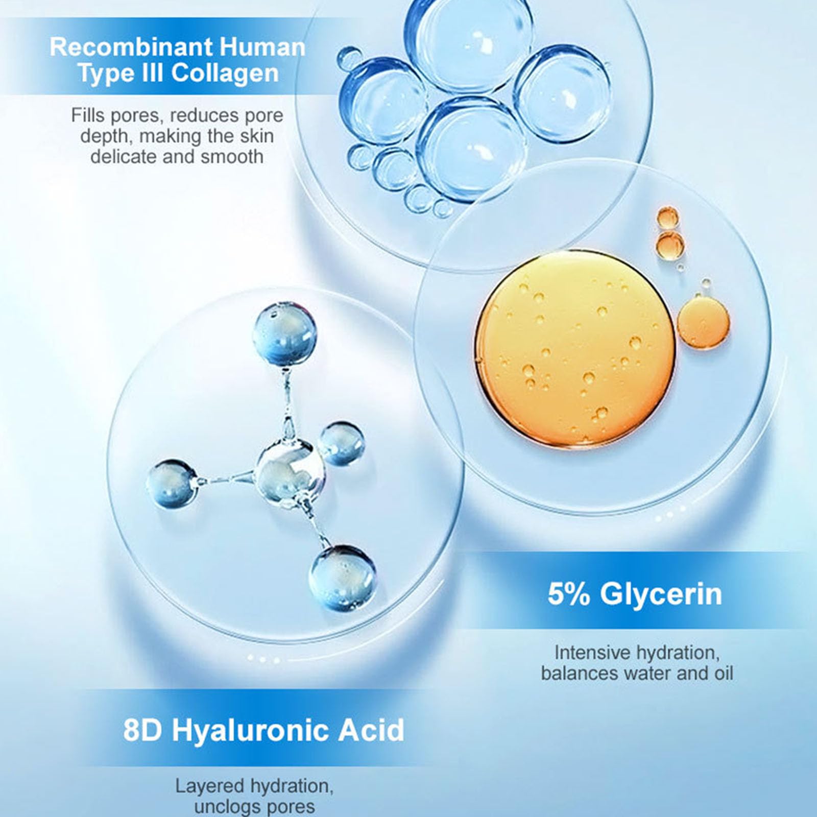 Features: Triple collagen enhances skin elasticity from within, making the skin firm and reducing pore depth. Balance excessive sebum, protects irritated and abused pores from damage and enlargement, reduce the appearance of pores. Developed with a unique oil-inclusive water technology and supercritical stabilization technique.The product texture is as smooth as cream, providing an instant burst of water, instantly quenching the skin's thirst. The product can enhance the skin cell’s metabolism. It has the smooth face skin function, which could maintain the skin elasticity as well as realize the firming skin effect Specification: Name: Pore Invisible Cream Applicable people: general Shelf life: 3 years Efficacy: clean pores, shrink pores, invisible pores Size: 105*48*48mm Package Included: 1*Pore Invisible CreamMore Info