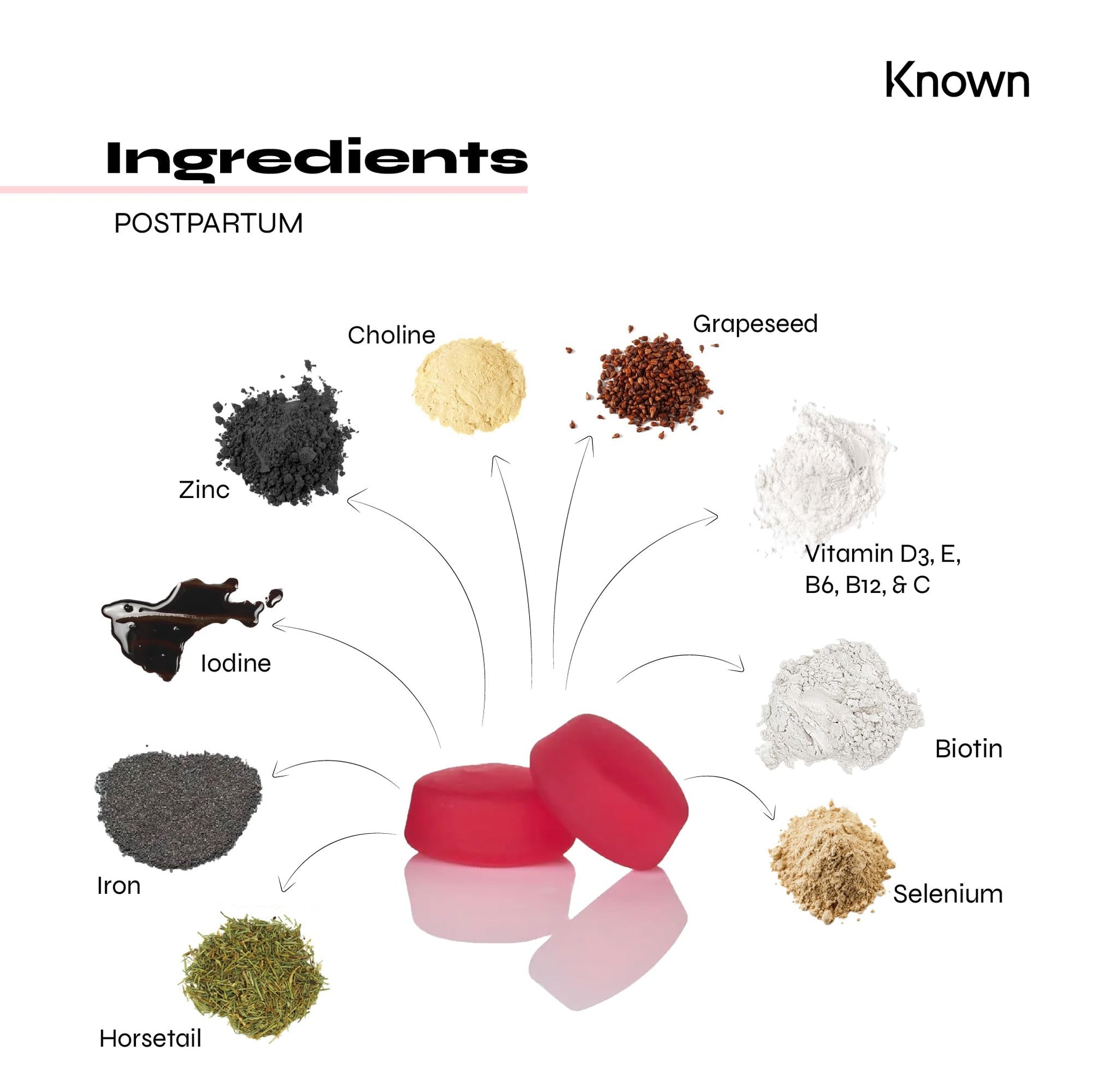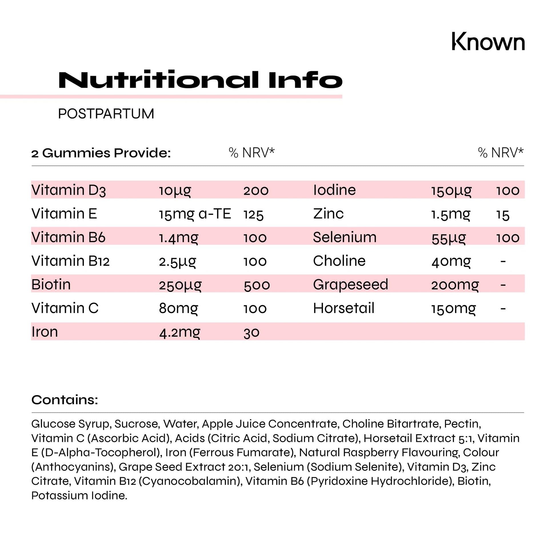 Postpartum Support Gummies by Known Nutrition | Natural Support After Pregnancy | Delicious Natural Mixed Berry Flavour | 60 Two-a-Day Vegan Vitamin Gummies (Two Month’s Supply)