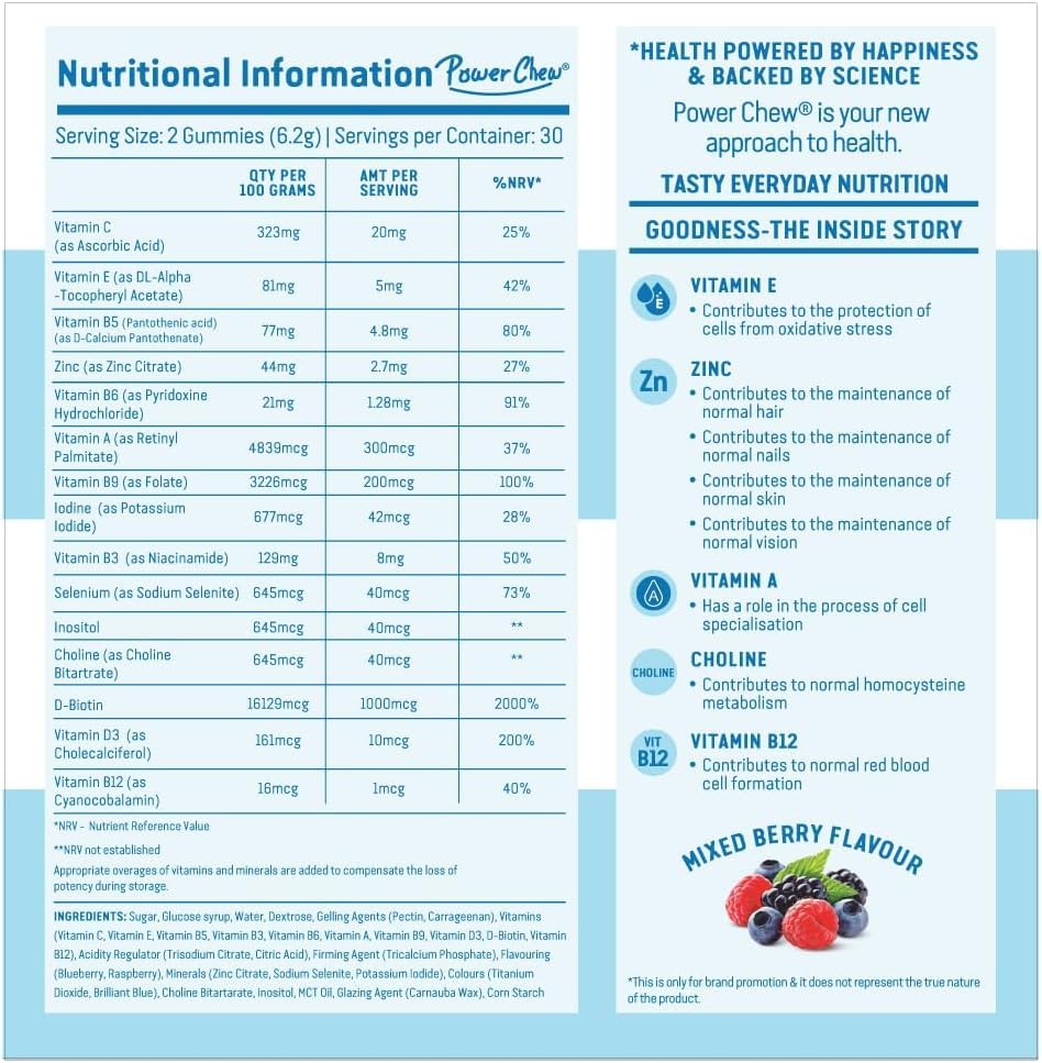 Power Chew Vitamins for Gorgeous Hair and Nails | Gummies for Women & Men | 60 Gummies 1 Month Supply | Healthy Nutrition Suitable for Vegetarians and Vegans | Super Tasty Food Supplement for Adults