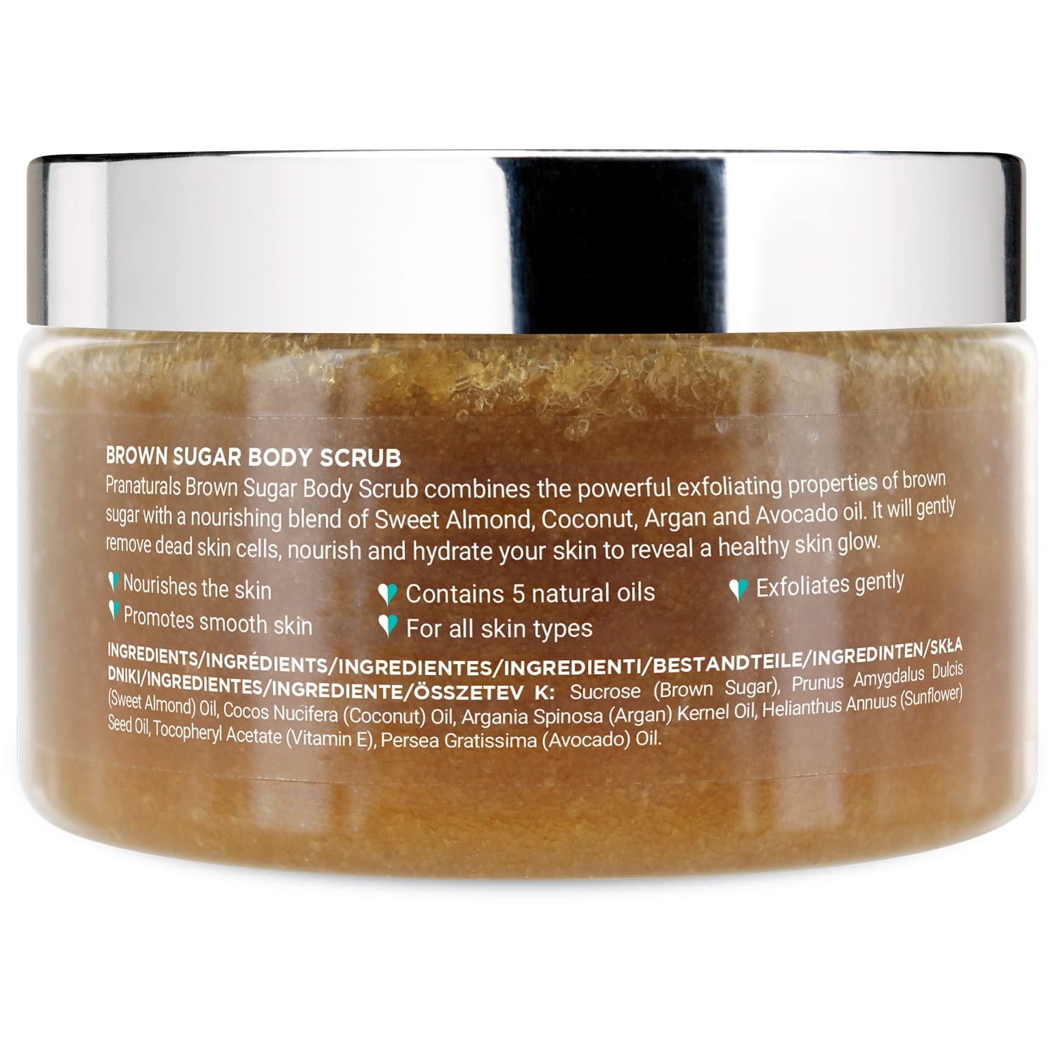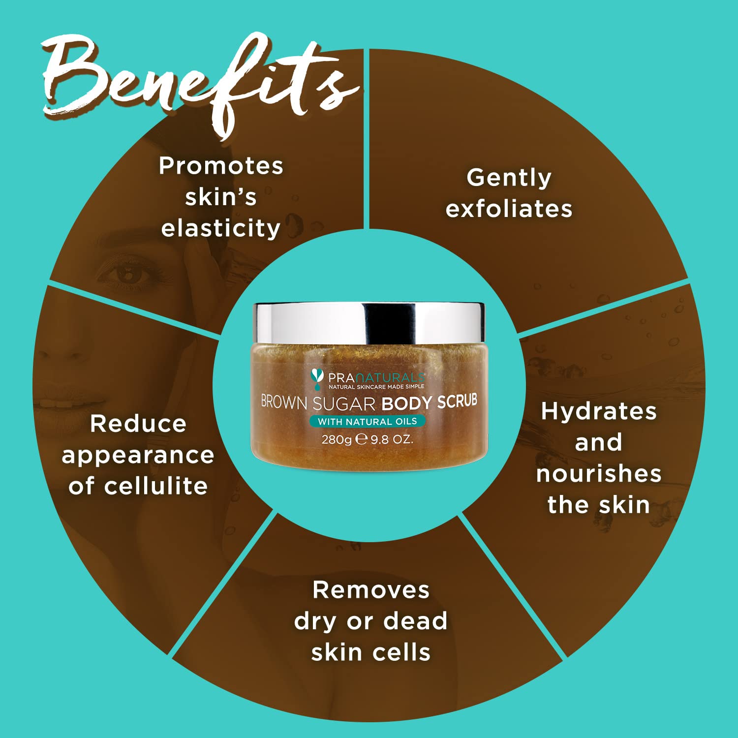 PraNaturals Brown Sugar Body Scrub - Natural Exfoliating Body Scrub - Gently Removes Dead, Dry Skin Cells - 280g