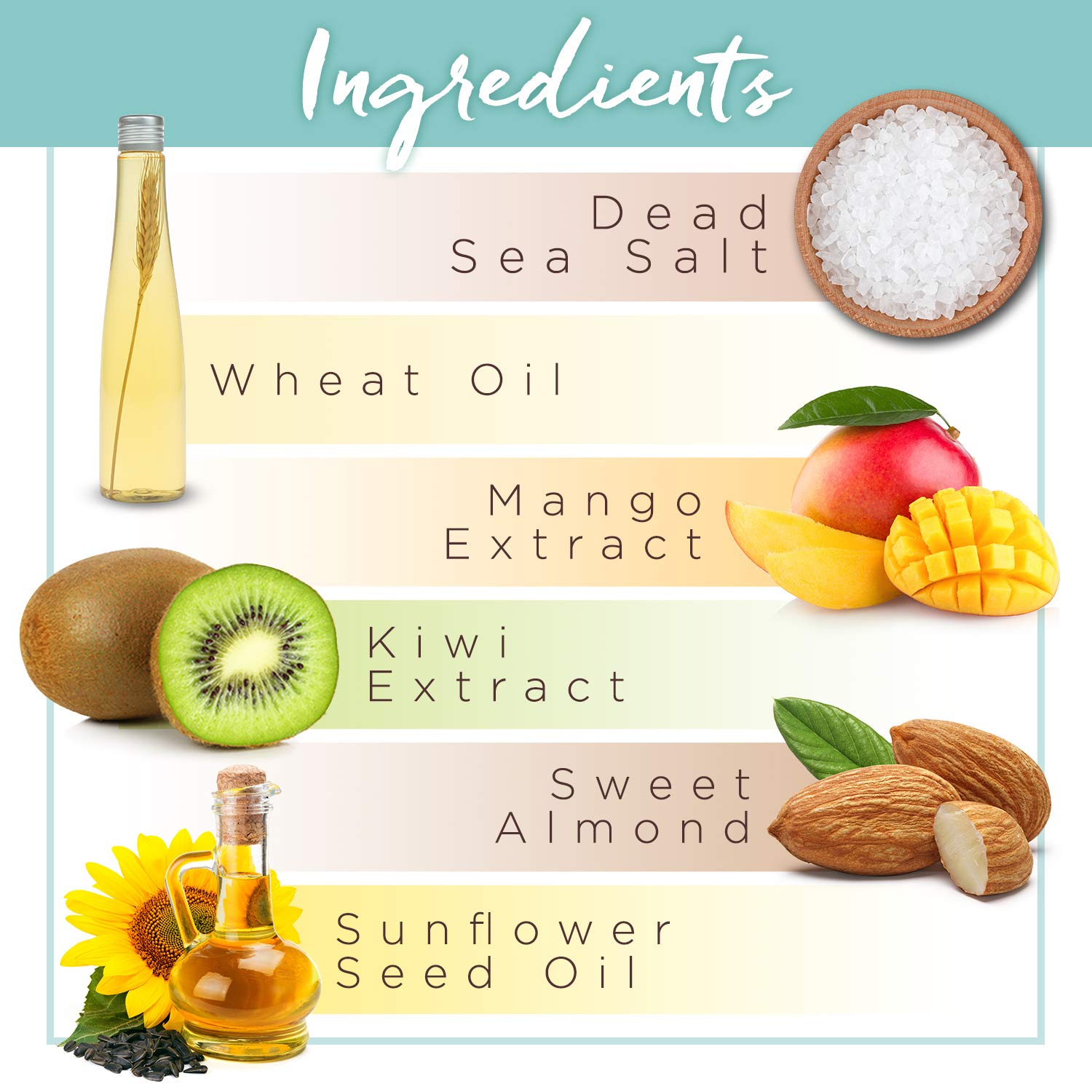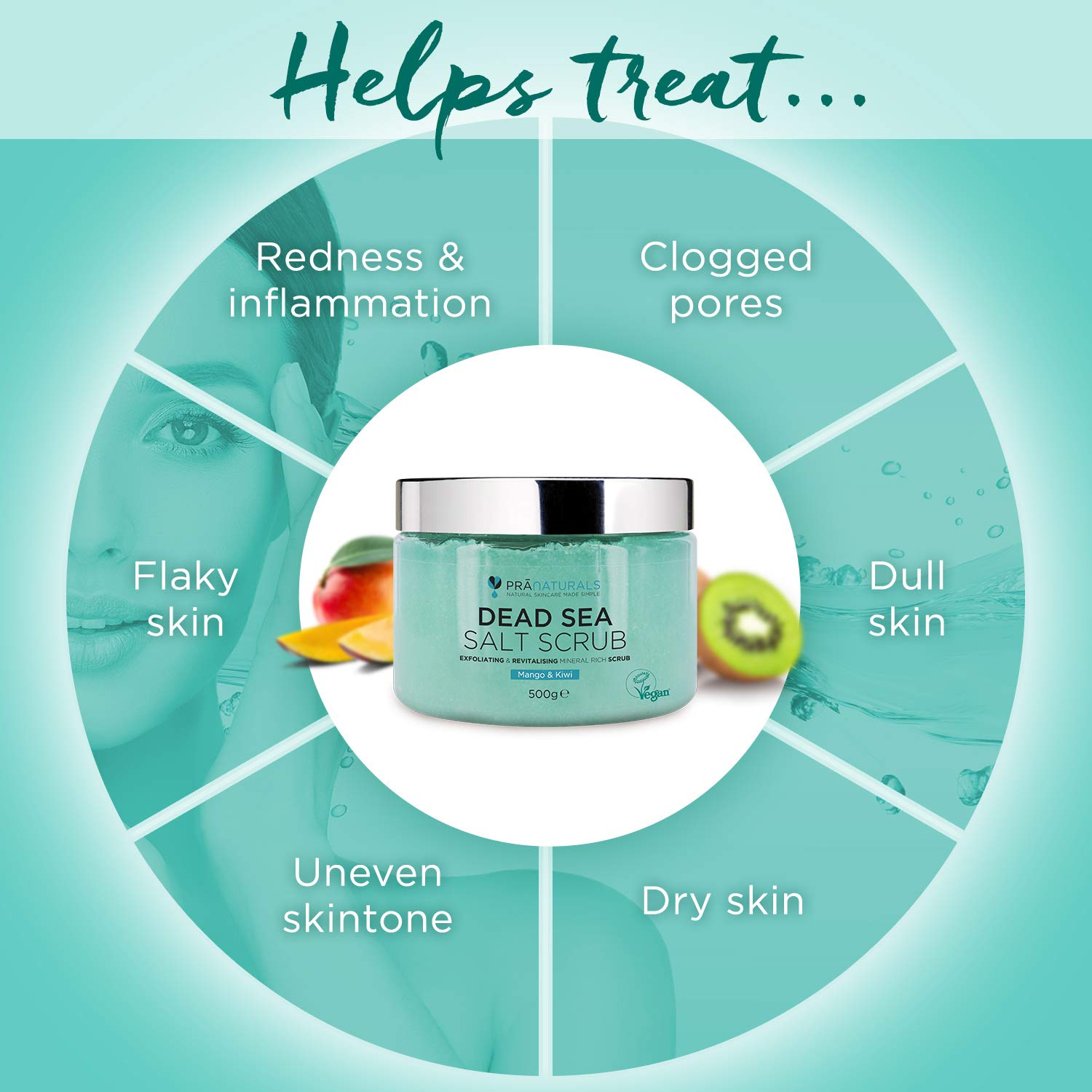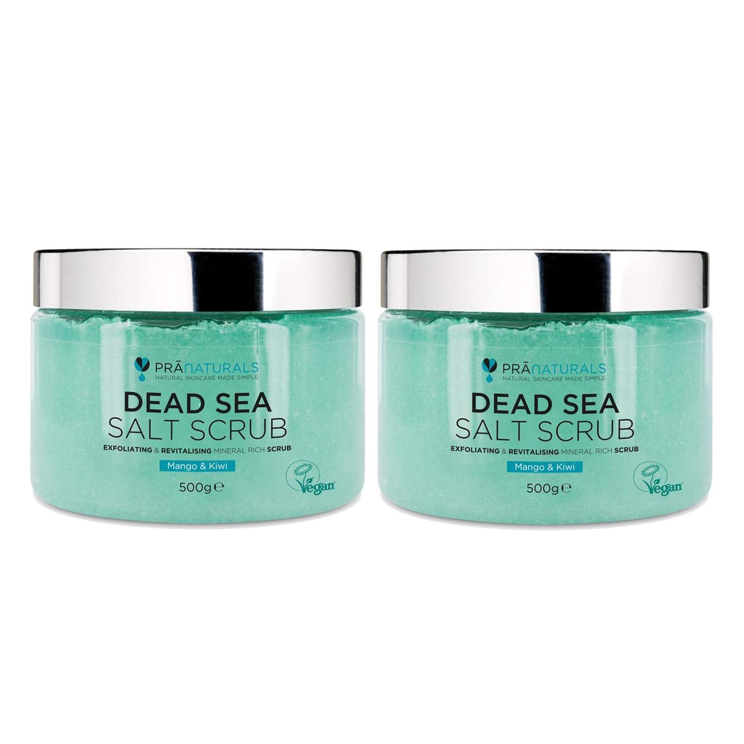 PraNaturals Dead Sea Salt Scrub, 100% Nourishing & Exfoliating, Mineral Rich Smooths Brightens & Moisturizes Skin, Enriched with Mango & Kiwi Scent (2x 500g)