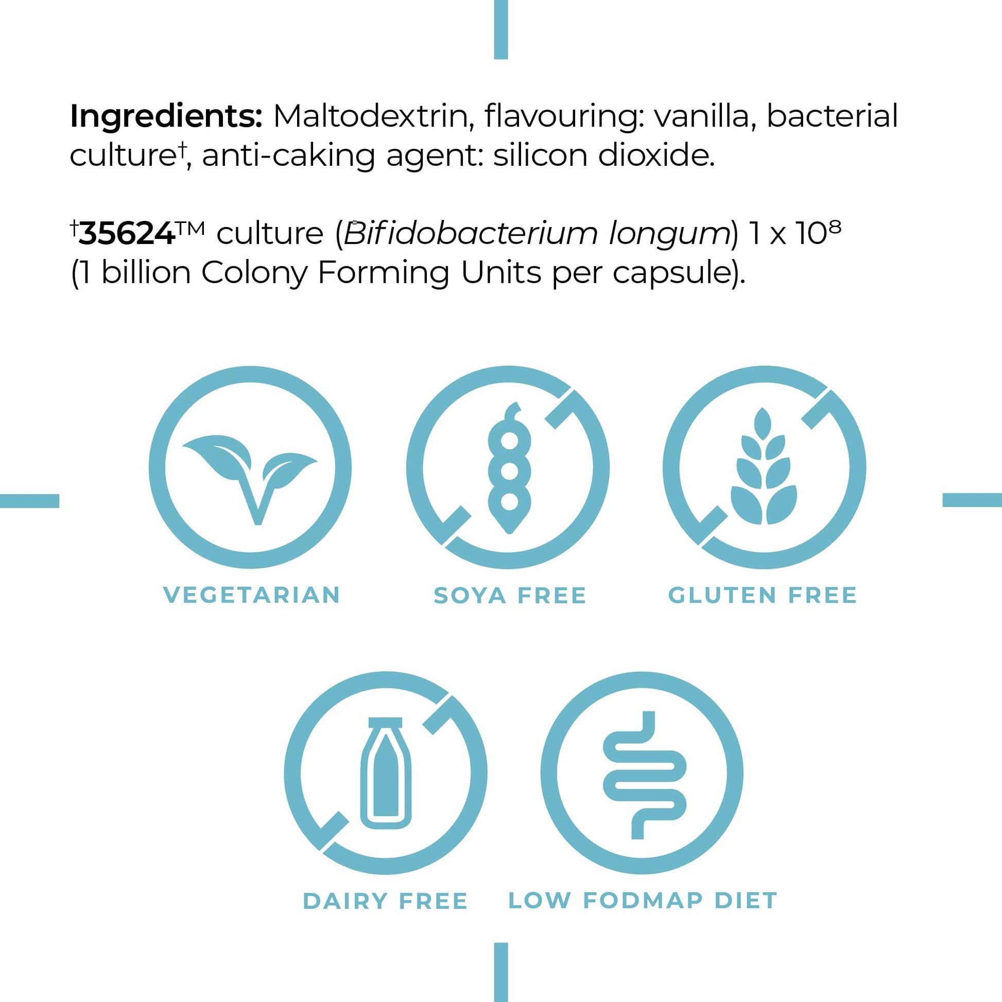 Your child’s gut is unique, with a universe of bacteria that influences their digestive system – and their microbiome is still developing. Alflorex Children brings you the benefits of our scientifically studied Bifidobacterium longum 35624 strain in a convenient and reliable dissolvable powder form that has a hint of vanilla. Each sachet of Alflorex Children is packed with 1 x 10⁸ live bacteria proven to reach the gut in peak condition. The naturally occurring bacteria is part of the family of bacteria given by mother to baby at birth. The powder is easily dissolved in water or milk and is an ideal solution for your children's daily routine. Also suitable for adults! Start your journey today.More Info