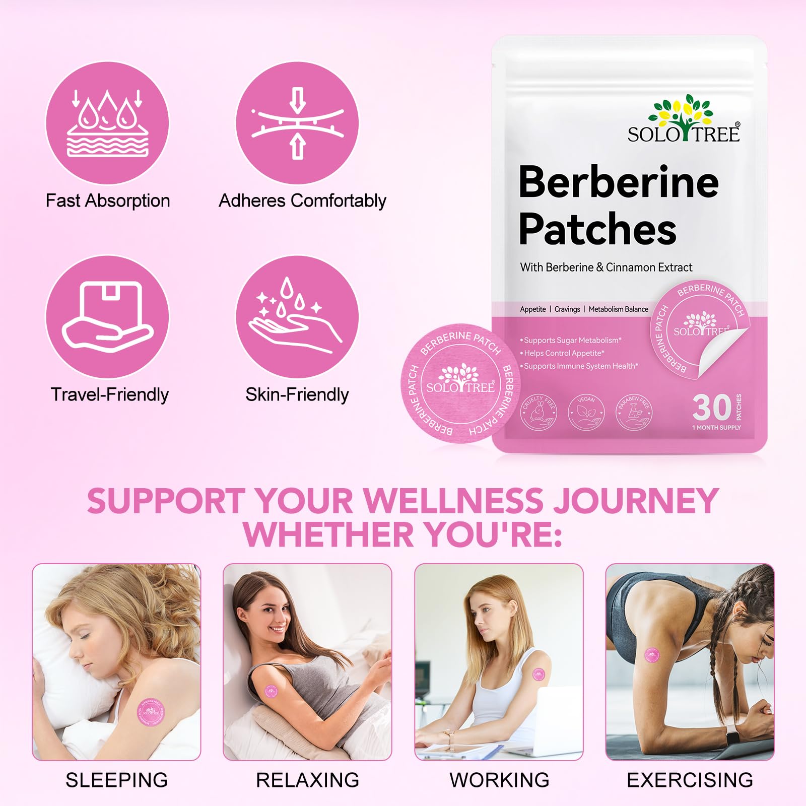 Premium Berberine Patch | 30 Patches | Natural Plant-Based Formula | Supports Metabolism & Energy Levels | Easy-to-Use, Discreet Patch