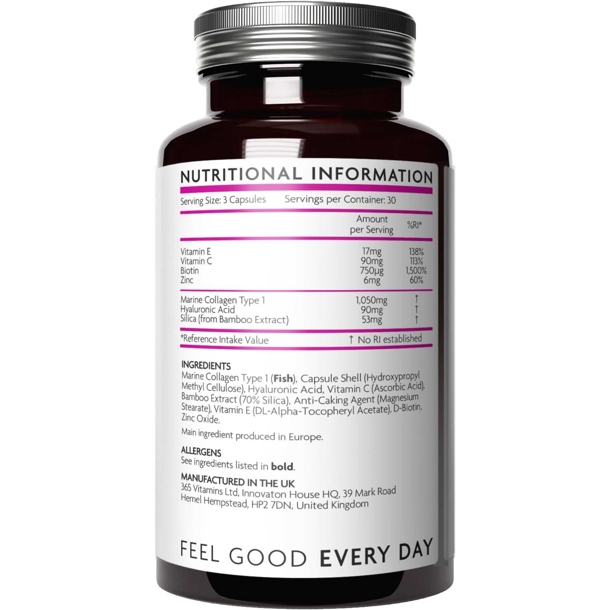 Premium Collagen Supplements for Women - High Strength Marine Collagen with Hyaluronic Acid, Biotin, Vitamin C & E - Supports Radiant Skin, Hair & Nails - UK Made - 90 Capsules