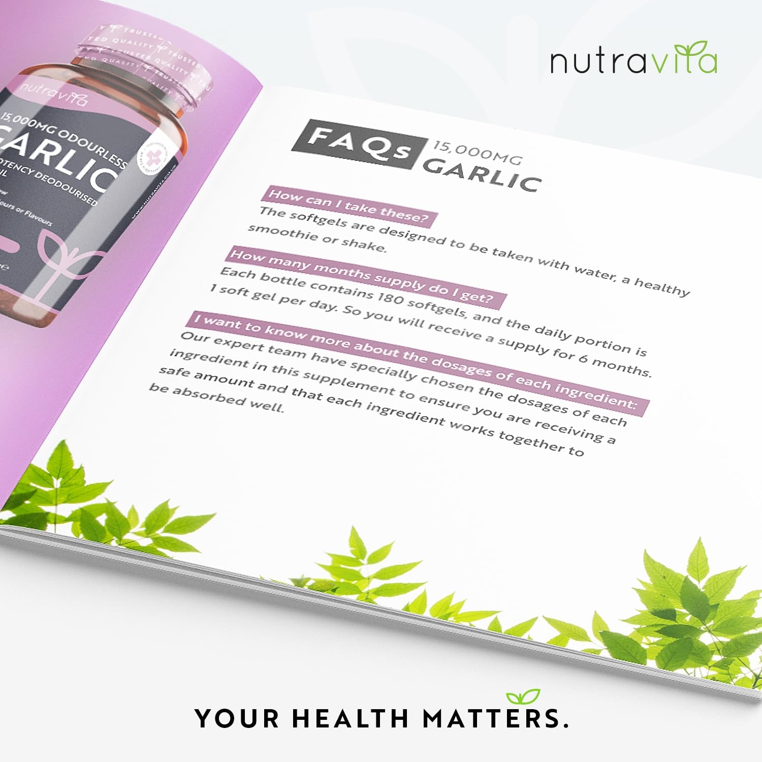 - ✔ HIGH POTENCY WITH 15,000MG OF GARLIC PER SOFT GEL CAPSULE – Each soft gel capsule in our Garlic Supplement contains 30mg of 500:1 high potency deodourised Garlic Oil extract equivalent to 15,000mg garlic bulbs. That is more than the strength of other alternatives on Amazon. And with 180 capsules per bottle for a 6-month supply, that is incredible value for money.