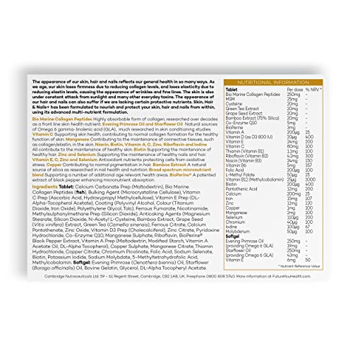 Prime Fifty Skin, Nails & Hair Vitamins – Bio Marine Collagen Supplements for Women with Biotin & Selenium – 28 Day Supply – Primrose Oil, Vitamin A & C – Beauty from Inner Health