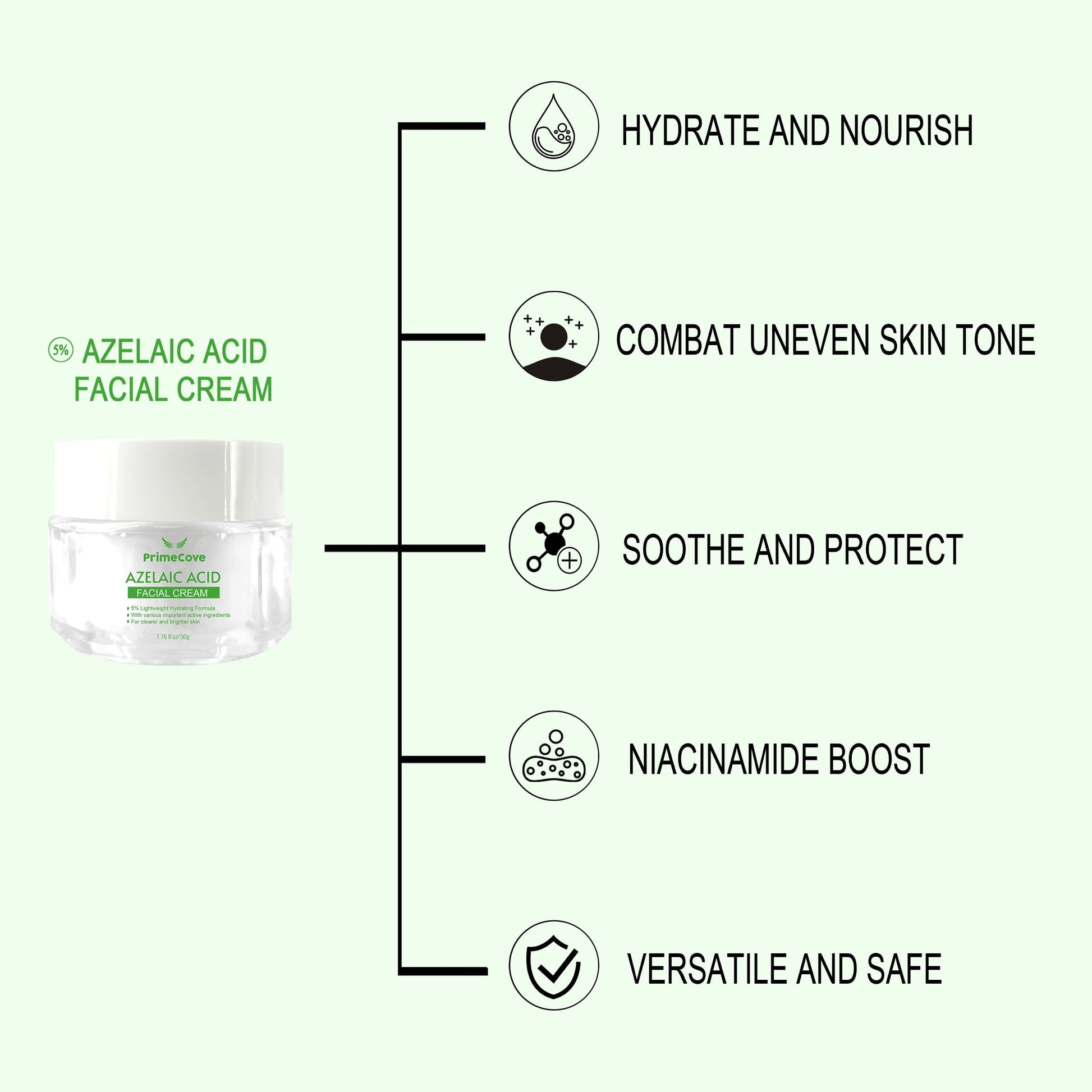 PrimeCove - 5% Azelaic Acid Facial Cream (50g) | Lightweight Hydrating Formula With Niacinamide For Clearer & Brighter Skin
