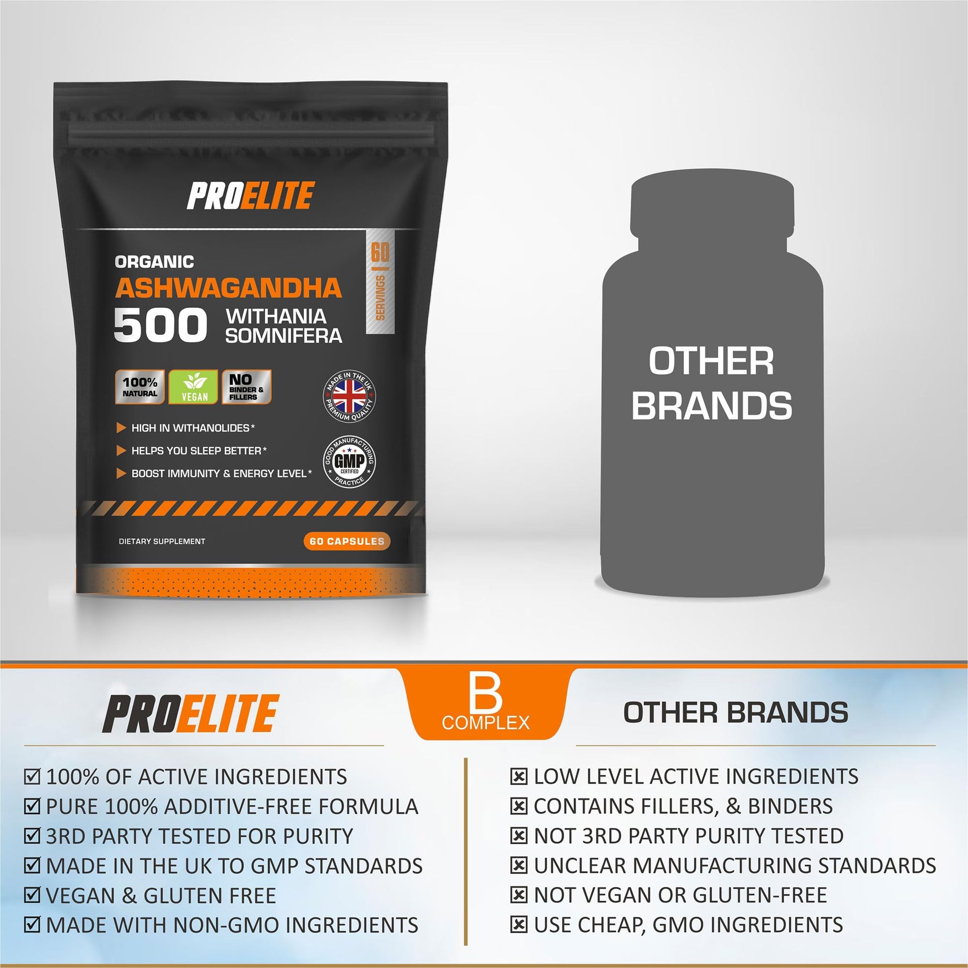Unlock the ancient wisdom of Ashwagandha with ProElite's Organic Ashwagandha vegan capsules. This premium supplement harnesses the power of Withania somnifera, an adaptogenic herb renowned for its revitalising properties. High in withanolides, these 100% natural and vegan capsules help promote better sleep, boost immunity and energy levels. Crafted in the UK with no binders or fillers, this GMP-certified formula offers a potent dose of 500mg per serving. Embrace holistic wellness and experience the transformative benefits of this ancient Ayurvedic remedy. Packaged in a resealable pouch for freshness.More Info