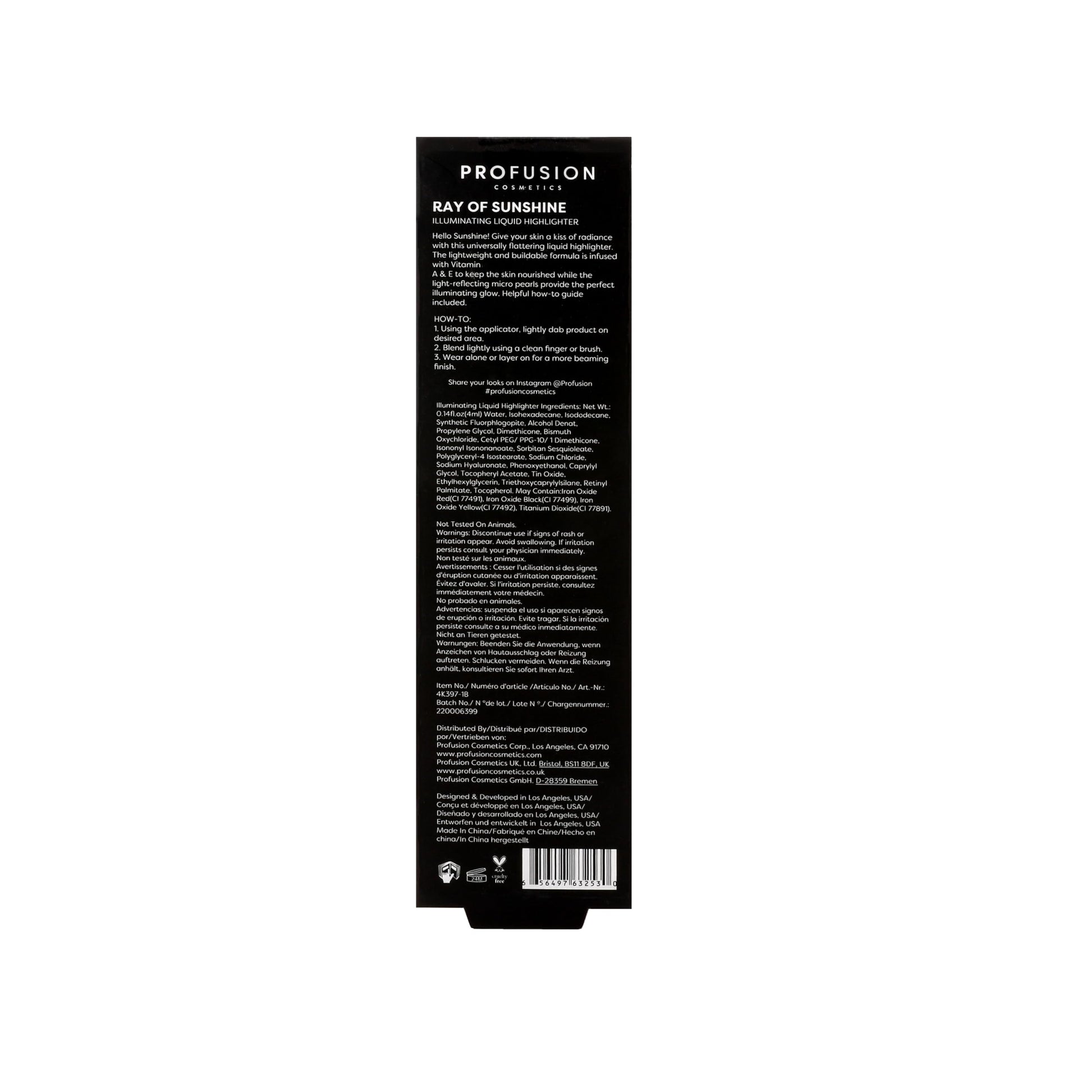 - FOR ALL SKIN TYPES: Profusion Cosmetics Ray of Sunshine Liquid Highlighter is suitable for all skin types. Elevate your beauty routine with this universal, cruelty-free highlighter that leaves you glowing, gorgeous, and confident.