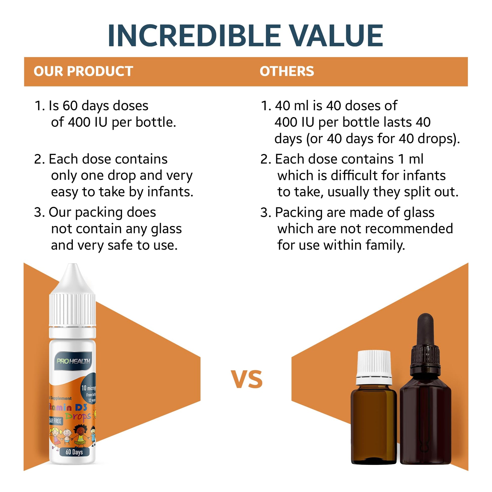 PROHEALTH Certified Preservative-Free Vegan Vitamin D3 Drops for Infants & Children - Sugar-Free, All-Natural, NHS Approved (2-Month Supply)