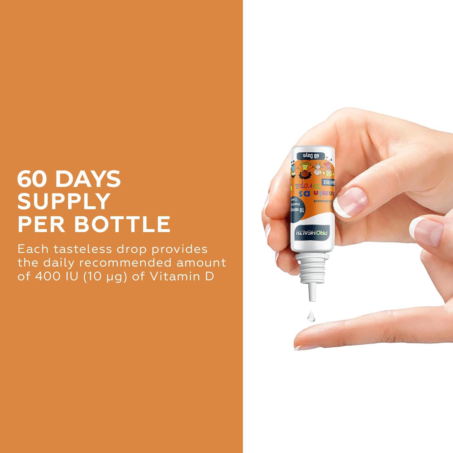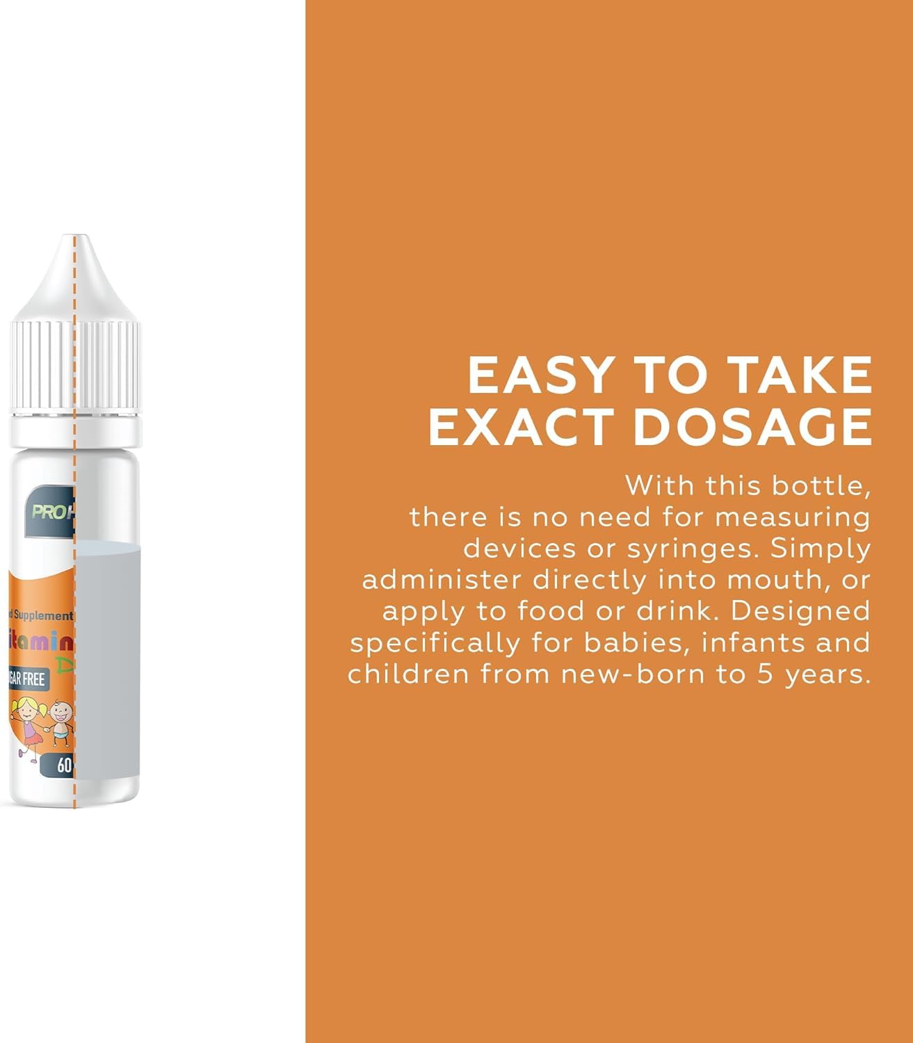 PROHEALTH Certified Preservative-Free Vegan Vitamin D3 Drops for Infants & Children - Sugar-Free, All-Natural, NHS Approved (60- Days Supply, 2-Pack)
