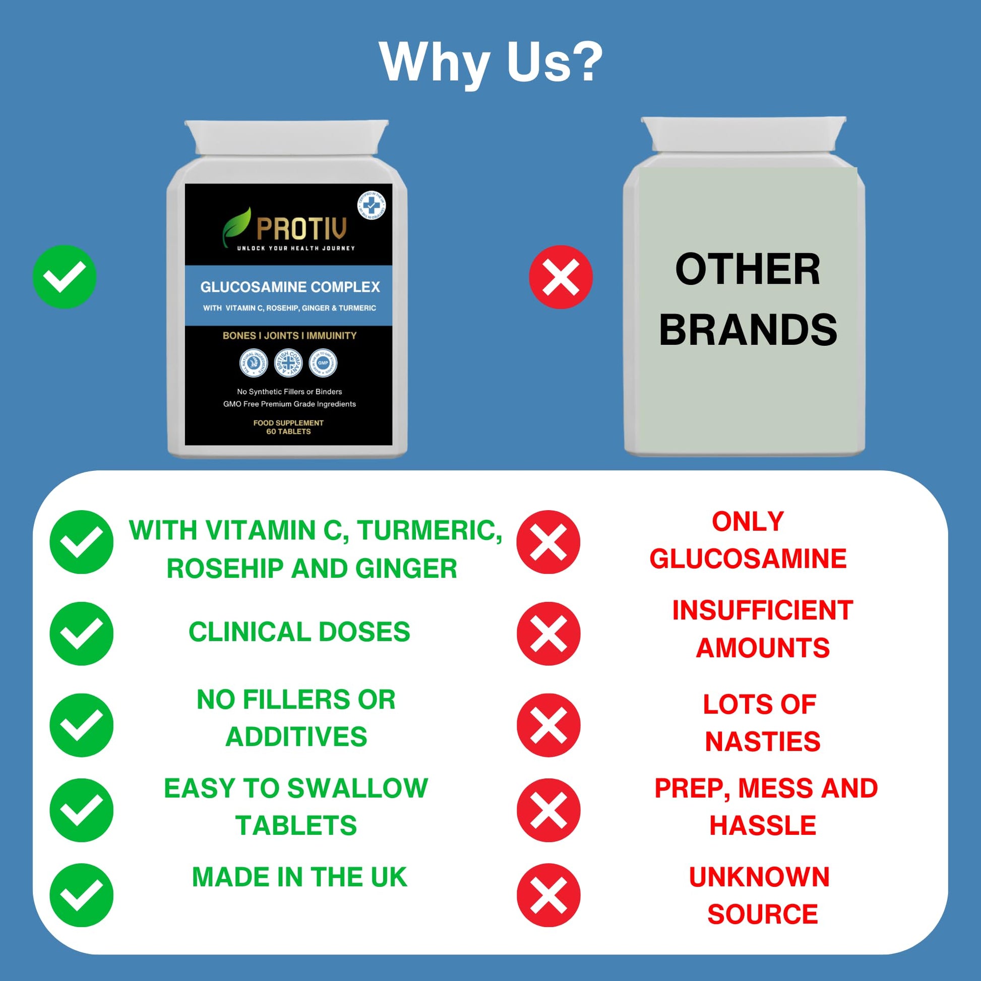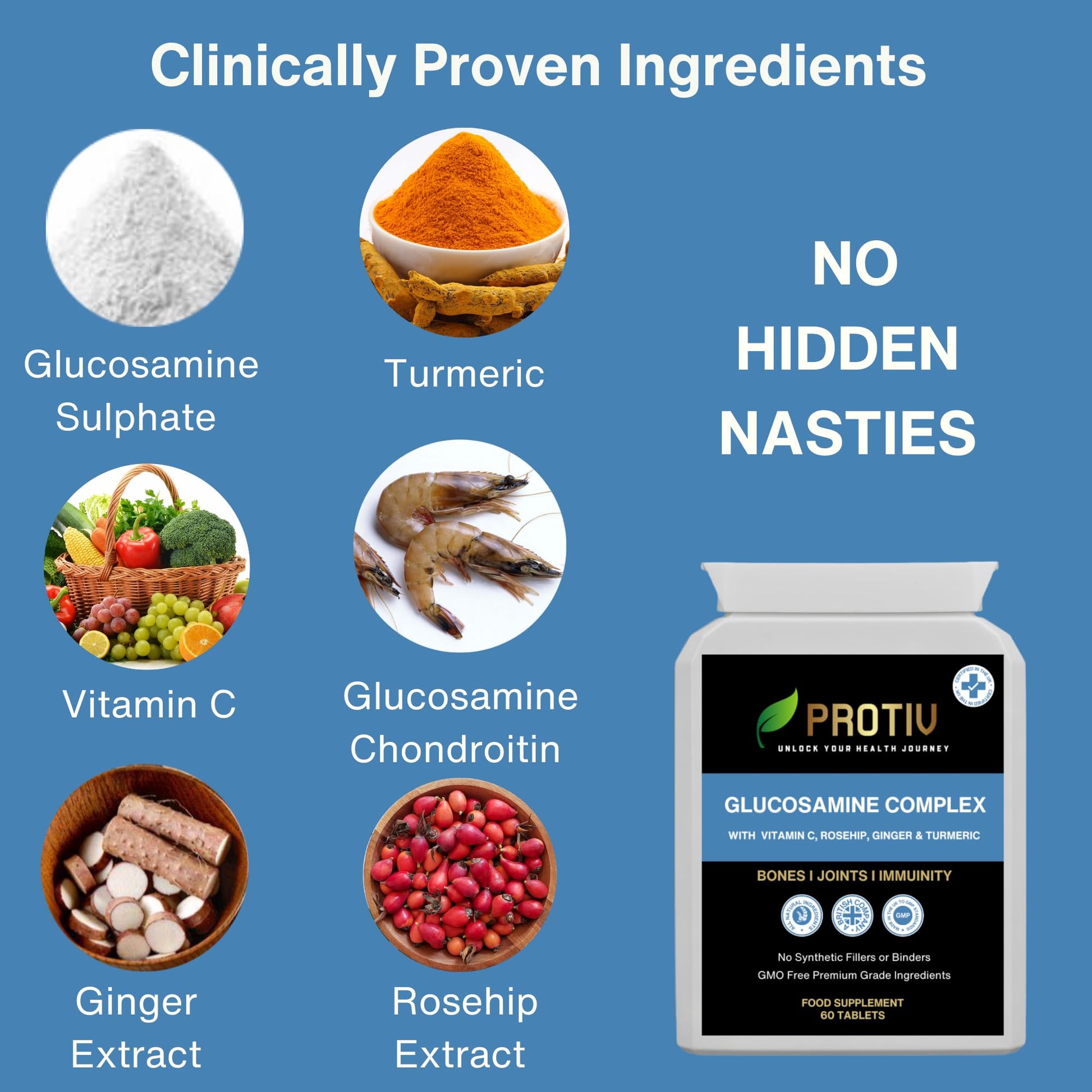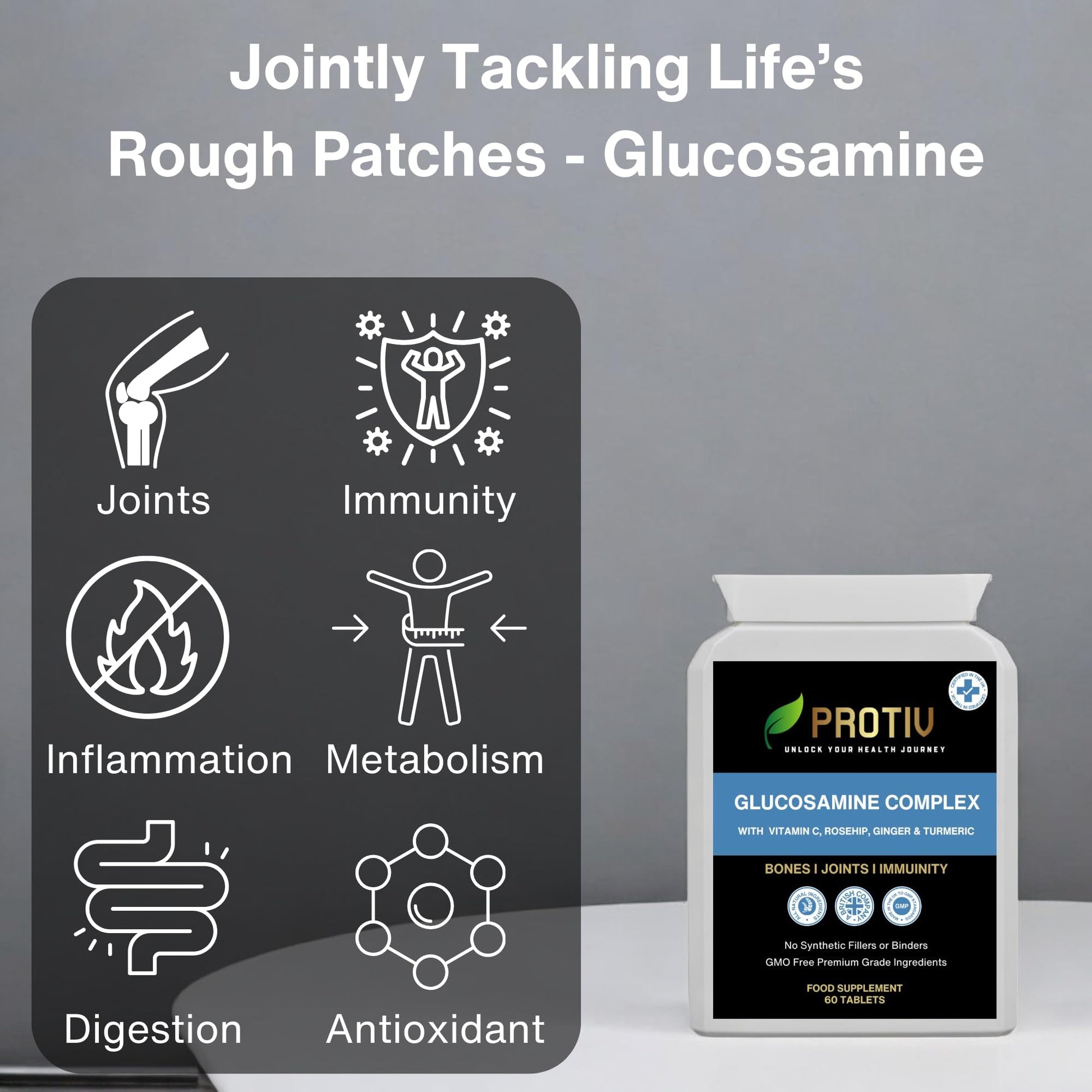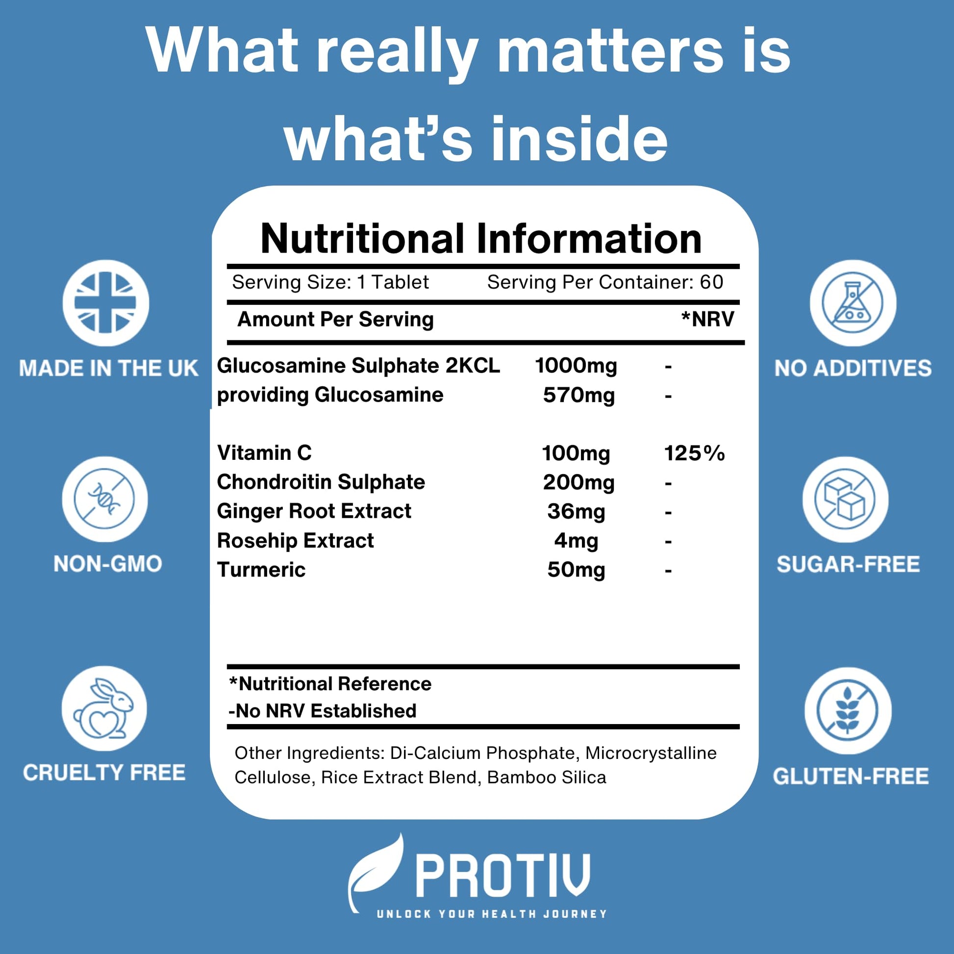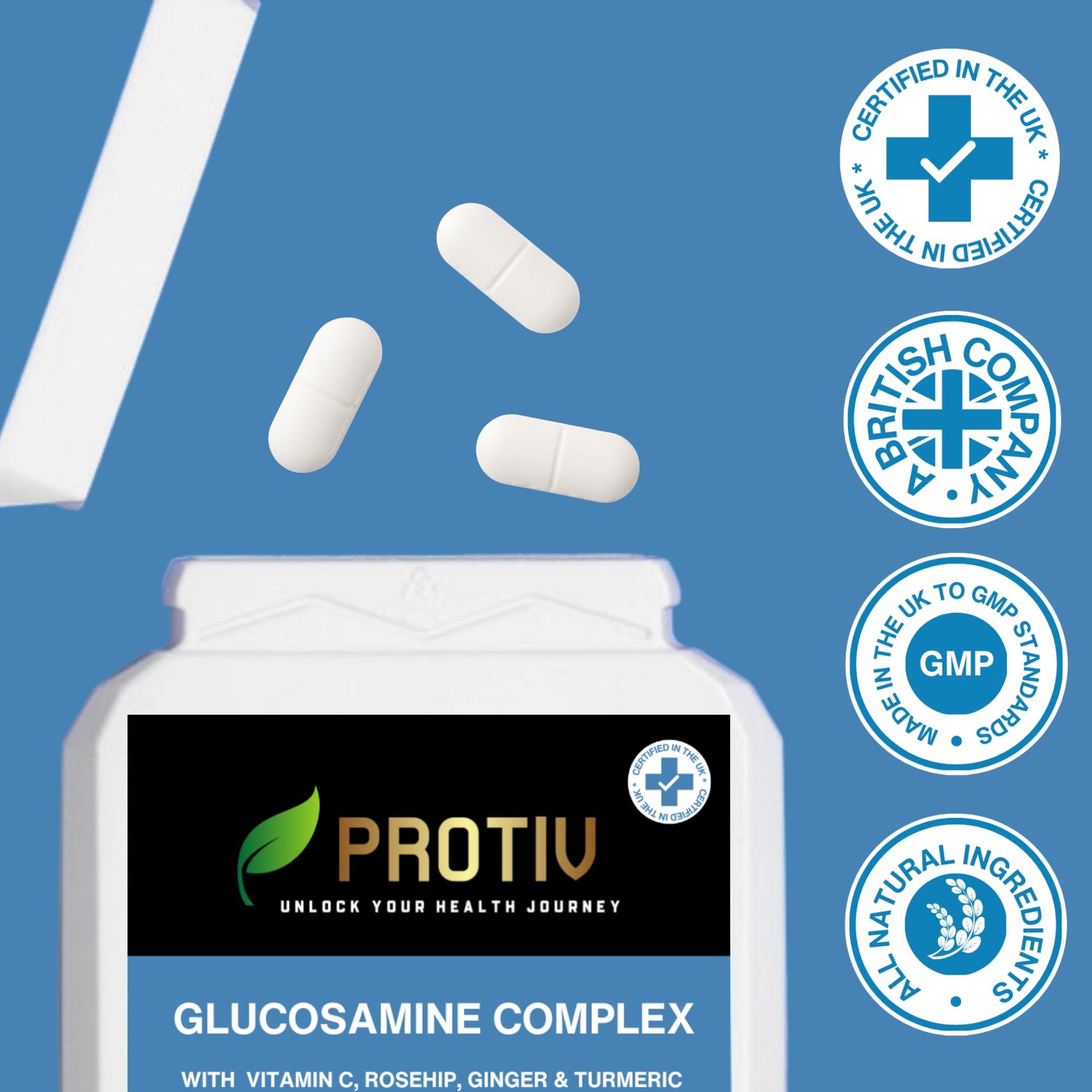 Protiv Glucosamine Sulphate 2KCL 1000mg 60 Tablets | 888mg Base Glucosamine per Tablet | UK Manufactured