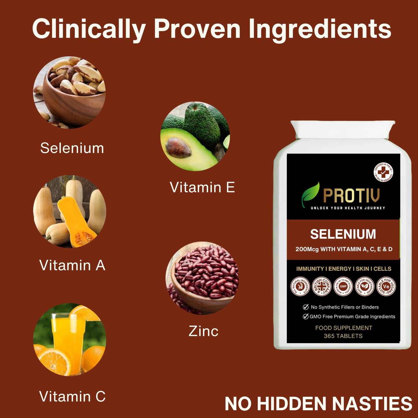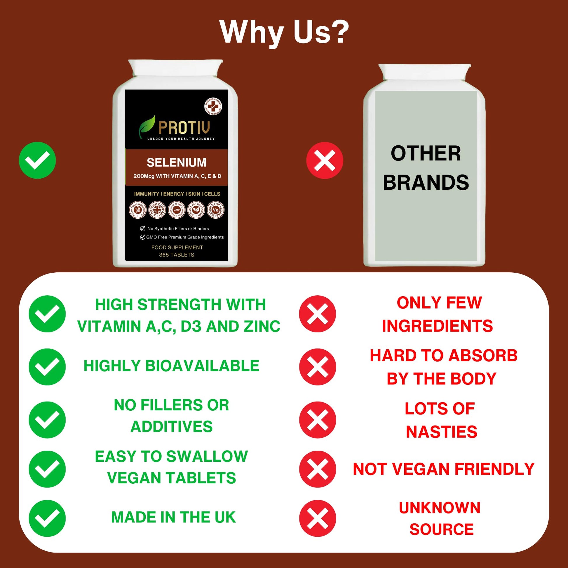 The importance of Selenium, a trace element, has only been recognised for around 50 years but is now considered the most important trace element in your diet. Selenium (+ Vitamin E & C) are antioxidants which contribute to the protection of cells from oxidative stress. It also contributes to the maintenance of normal hair and nails, normal spermatogenesis, normal function of the immune system and contributes to normal thyroid function. As a trace mineral we only need a small amount of Selenium to be effective. Unfortunately, in Europe there is a large amount of Selenium deficiency because the best dietary source of selenium is wheat, but crops grown on European soil tend to be low in the mineral. According to a study by Rayman, "the level of intake in Europe and some parts of the world is not adequate." The key to selenium supplementation is not taking too much. There are some high strength selenium supplements on the market but the most recent research shows that it is important not to take too much selenium either. Our supplements provides 91% of the NRV (Nutrient Reference Value or Recommended Daily Allowance) which leaves some room from dietary sources. Our Selenium comes packaged together with Vitamins A, C & E for added synergic benefit. Selenium, Vitamin C & A contribute to the normal function of the immune system. Vitamin C contributes to the reduction of tiredness and fatigue and normal energy-yielding metabolism. In addition: Vitamin A contributes to the maintenance of normal mucous membranes, maintenance of normal skin, maintenance of normal vision Vitamin A has a role in the process of cell specialisation Vitamin C contributes to normal collagen formation for the normal function of blood vessels, bones, cartilage, gums, skin and teeth Vitamin C contributes to normal functioning of the nervous system Vitamin C contributes to normal psychological function Vitamin C increases iron absorption. Suitable for Vegetarians and Vegans.More Info