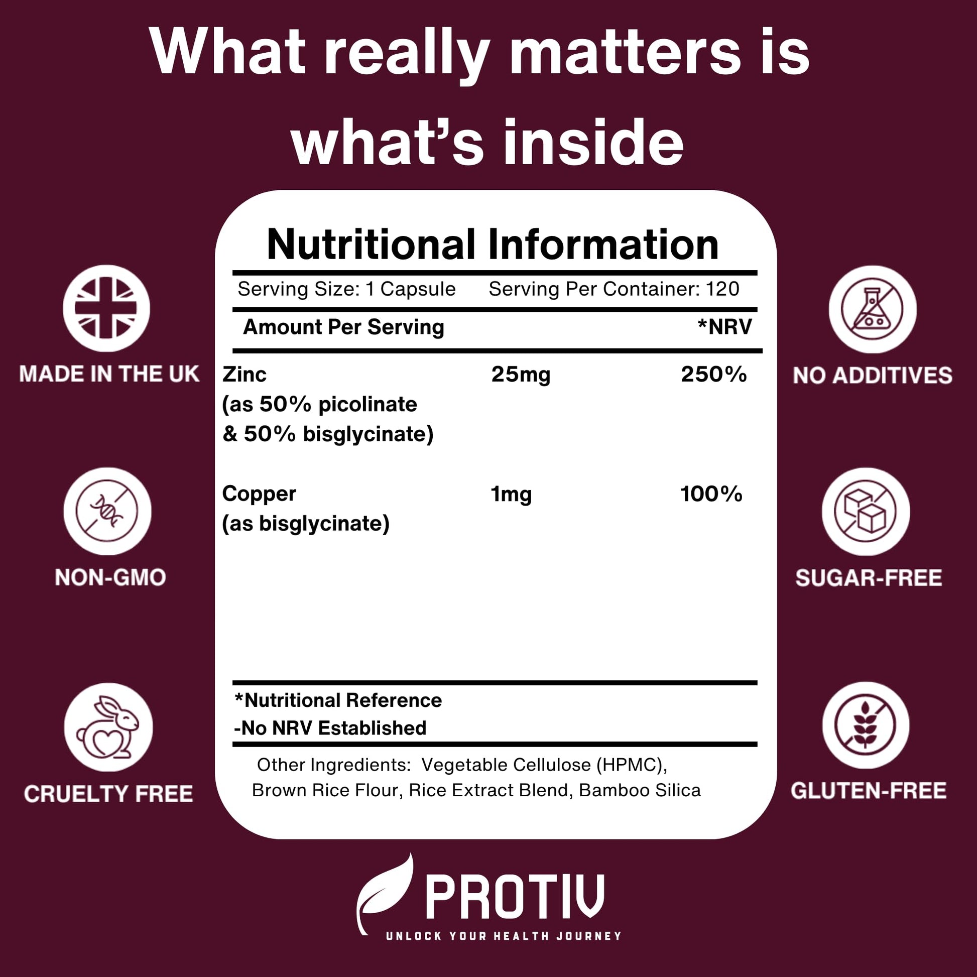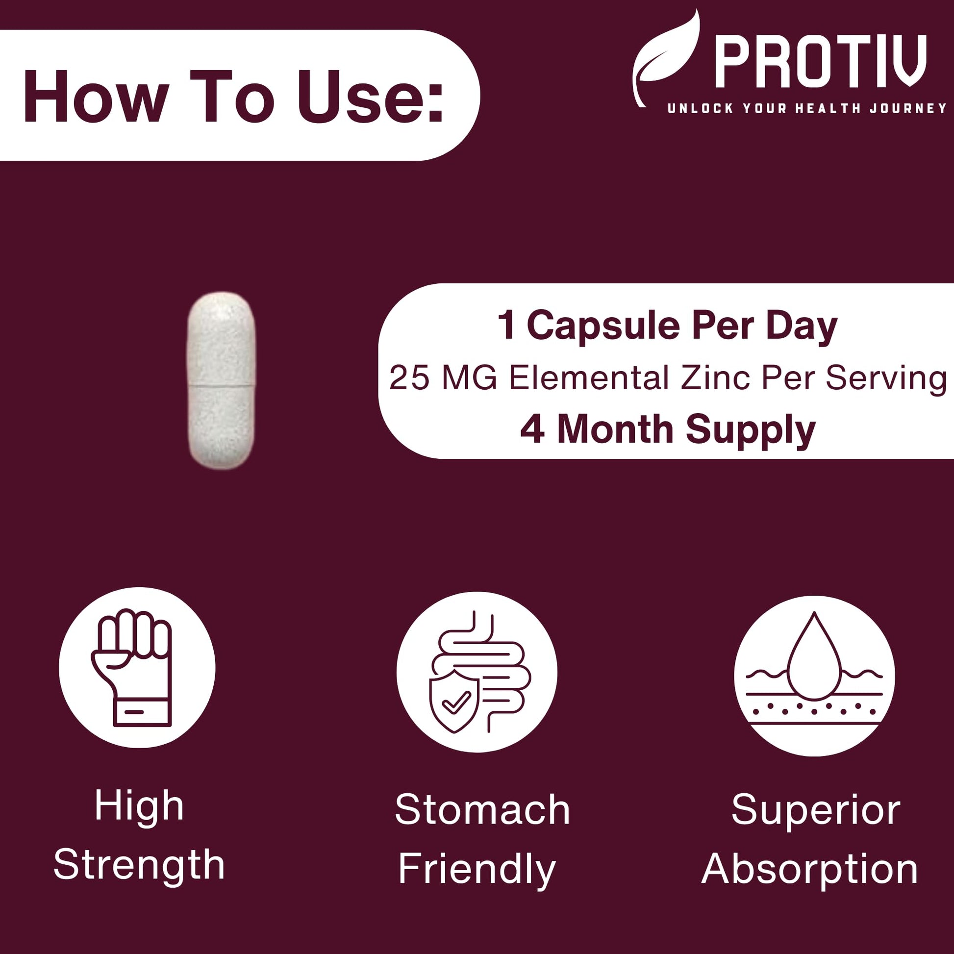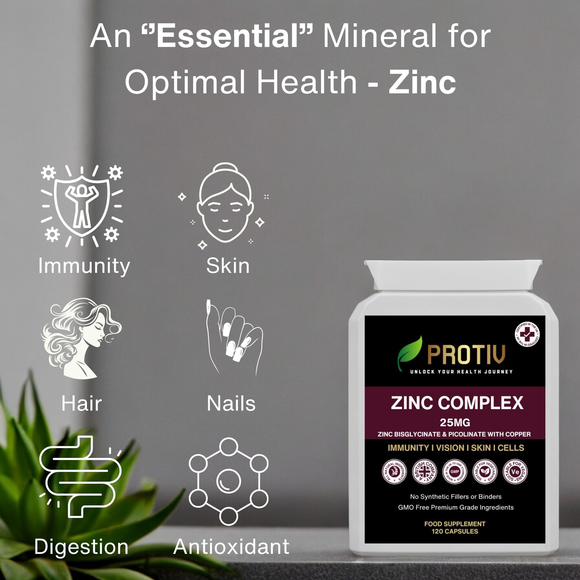 Protiv Zinc 15mg 120 Capsules - Essential Mineral Supplement for Immune System Support and Skin, Hair & Nail Care
