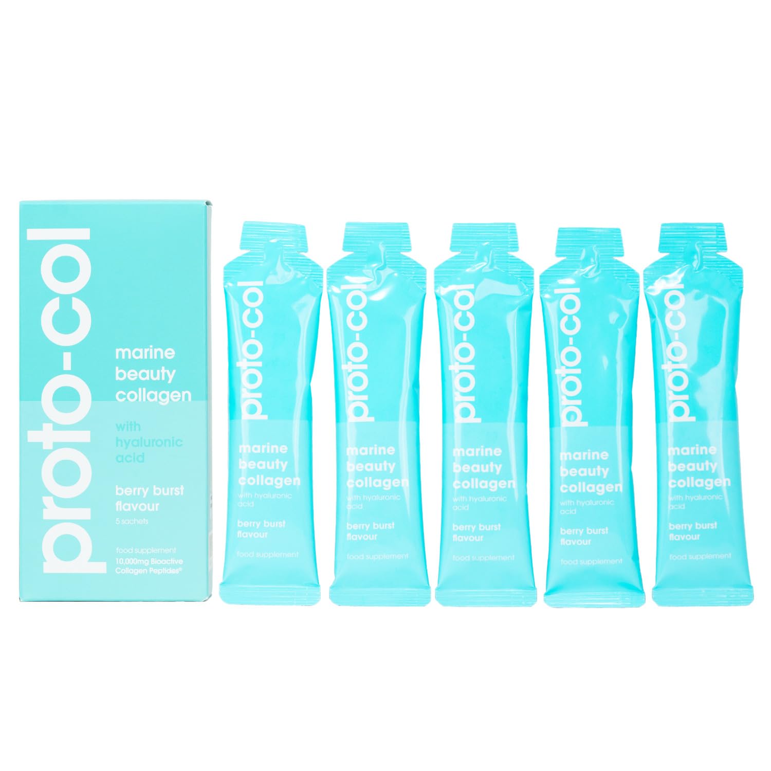 Trial the taste and benefits of the secret to radiant, youthful skin with proto-col's Marine Beauty Collagen. This innovative supplement harnesses the power of marine collagen, a highly bioavailable form of collagen derived from wild caught fish. Each sachet is packed with a potent blend of hydrolysed 10,000mg marine collagen peptides, designed to nourish your skin from within. Marine collagen is easily absorbed by the body, replenishing the collagen levels that naturally decline with age. By boosting your collagen levels, this supplement helps reduce the appearance of fine lines and wrinkles, restoring your skin's elasticity and firmness. Enjoy a revitalised complexion with a healthy, natural glow. With 5 convenient sachets in a taster box, it's easy to incorporate Marine Beauty Collagen into your daily routine. Simply mix a sachet with water or your favourite beverage and let the marine collagen work its magic. Embrace the power of nature and unveil your most radiant, beautiful self with proto-col's Marine Beauty Collagen.More Info