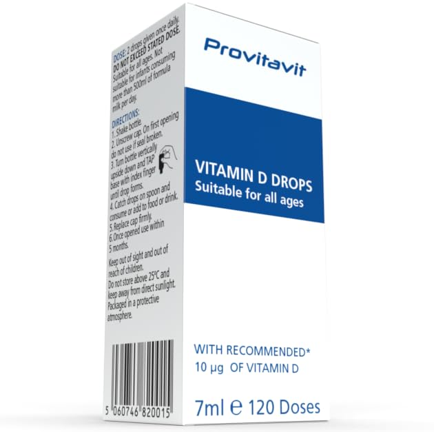 Provitavit Vitamin D Drops Newborn Baby to Adult - 10μg (400 IU) 7 ml - 4 Months Supply - Supports The Immune System and Normal Bones - D3 - Made in UK.
