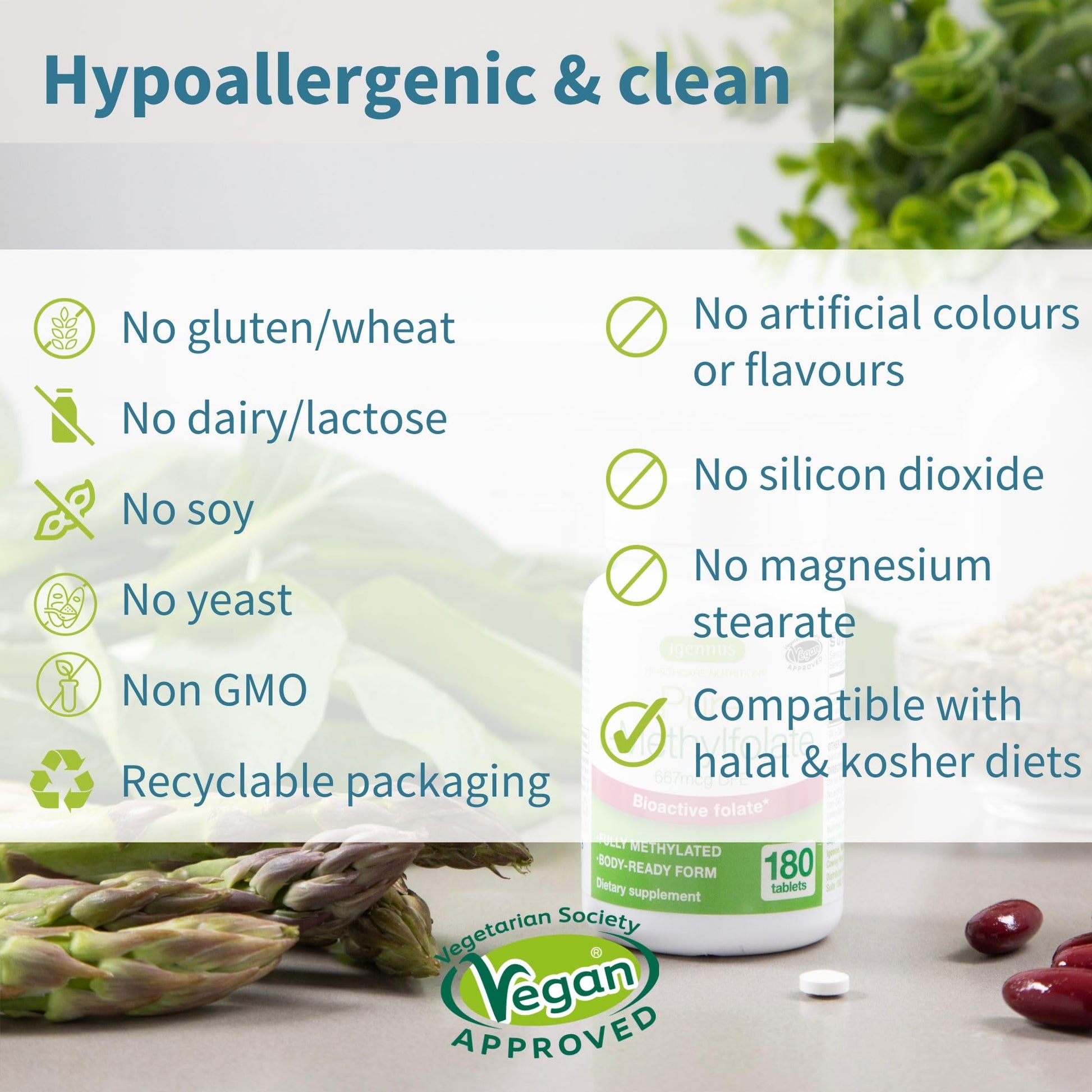 - PURE & CLEAN - we only use hypoallergenic ingredients, with no unnecessary additives (such as silicon dioxide, magnesium stearate or titanium dioxide), vegan & non-GMO