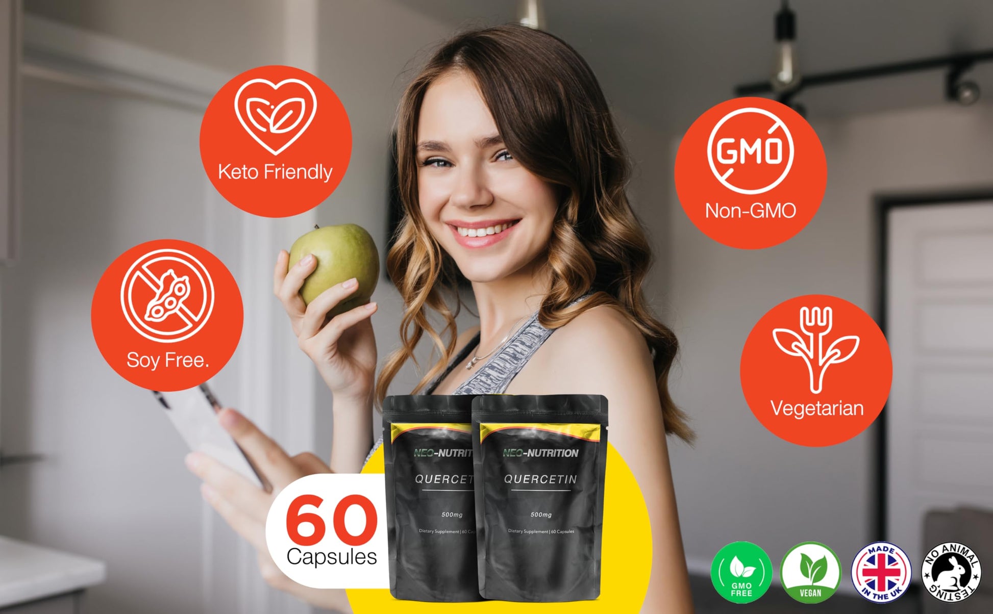 Pure Organic Quercetin - High Potency Quercetin Supplement for Antioxidant Support - Organic Quercitin Antioxidant Supplements for Immune Health & Energy Boost