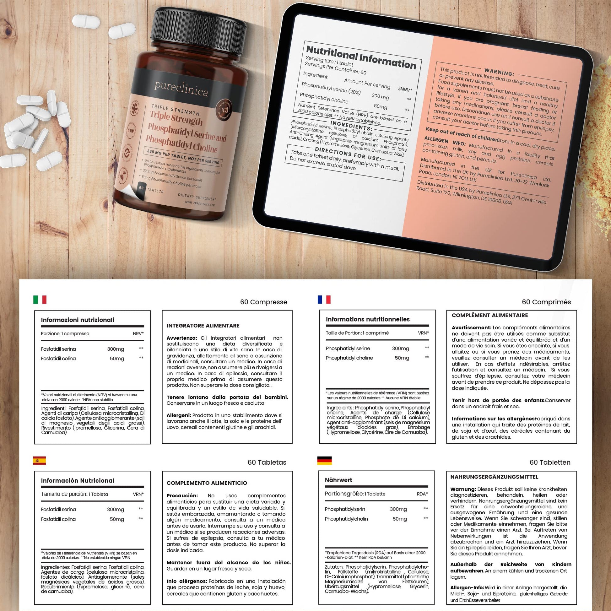 TRIPLE STRENGTH PHOSPHATYDYL SERINE and PHOSPHATIDYL CHOLINE x 240 TabletsTRIPLE STRENGTH FORMULA. Each of our tablets are packed full of a combined 350mg of Phospholipids, including a massive 300mg Phosphatydyl Serine – more than 3 times as much as most competitor products. Added to that is an impressive 50mg of Phosphatydyl Choline to ensure that our formula provides a comprehensive Phosphatydyl complex that can help maximize cognitive functionEFFECTIVE COGNITIVE SUPPORT. Feel Serine and keep your grey matter in optimal condition with our high strength formula. Phosphatydyl Serine and Phosphatydyl Choline support cell integrity, release feel good hormones and help to keep brain and cognitive functions firing on all cylinders. Whilst natural levels can decline due to age or stress, just one of our tablets per day can to keep your levels topped up and keep you functioning at your best.