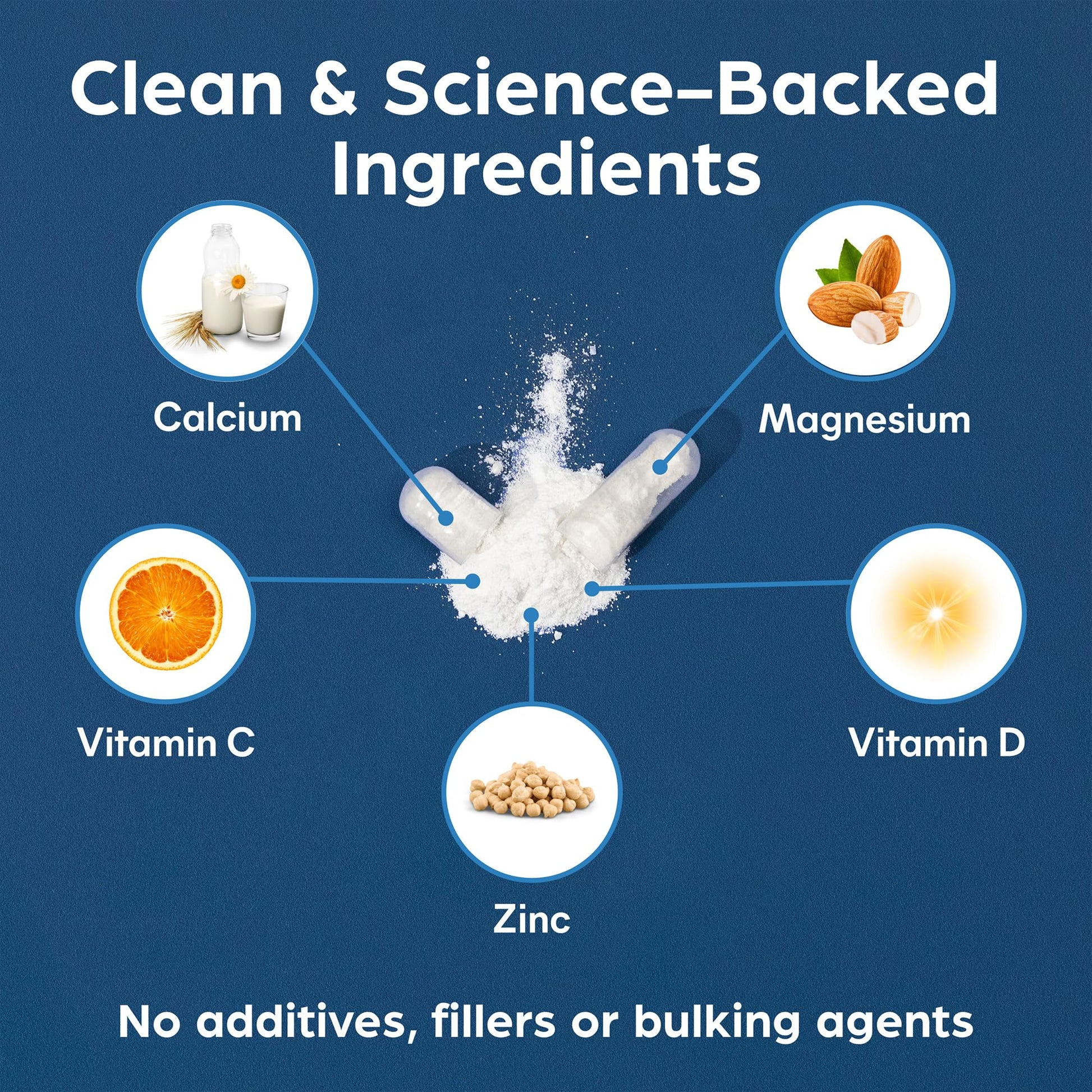 MULTIPLE HEALTH BENEFITS - Beyond bone health, these essential nutrients contribute to normal muscle function, immune system function, and energy metabolism. Vitamin C supports normal collagen formation, whilst zinc contributes to normal protein synthesis.