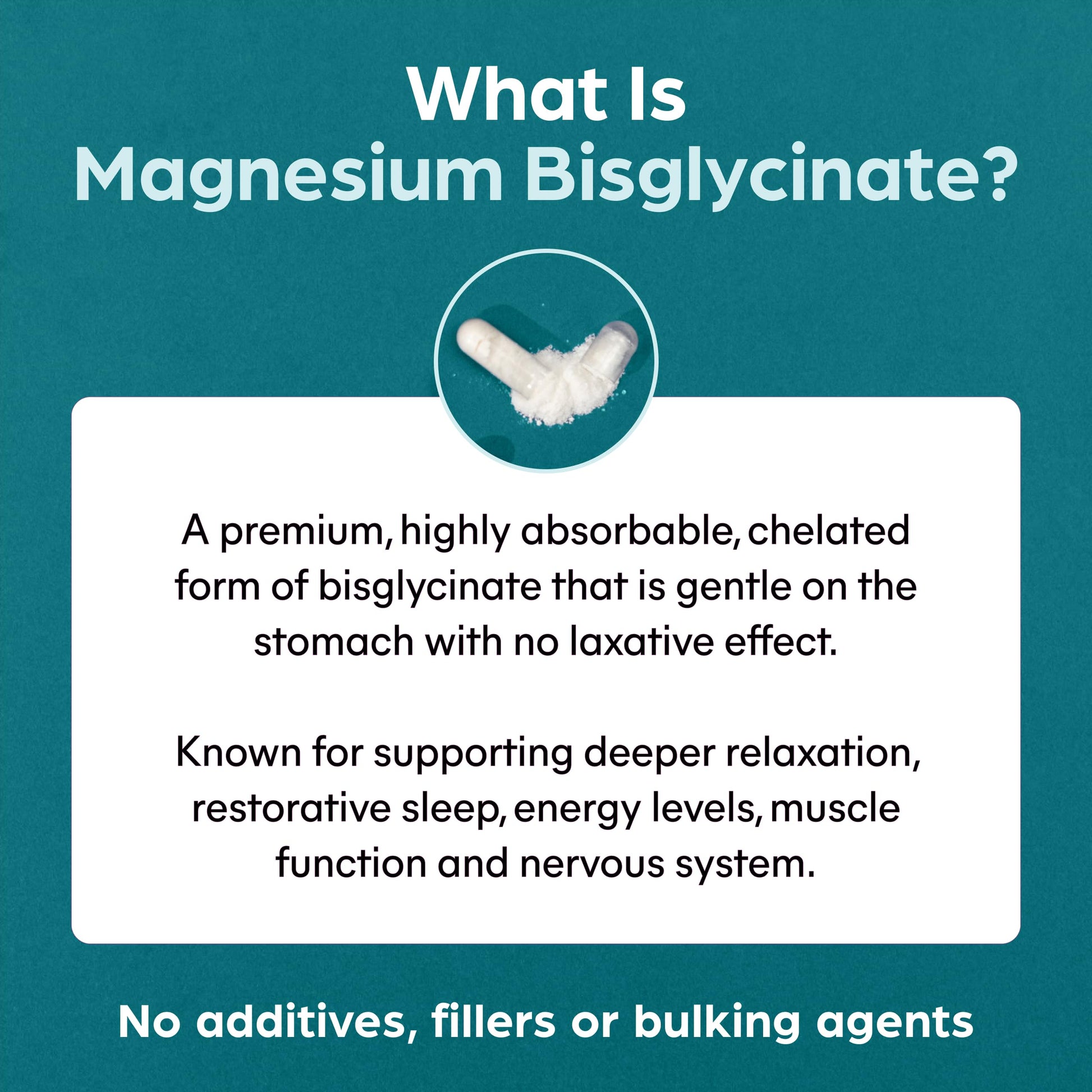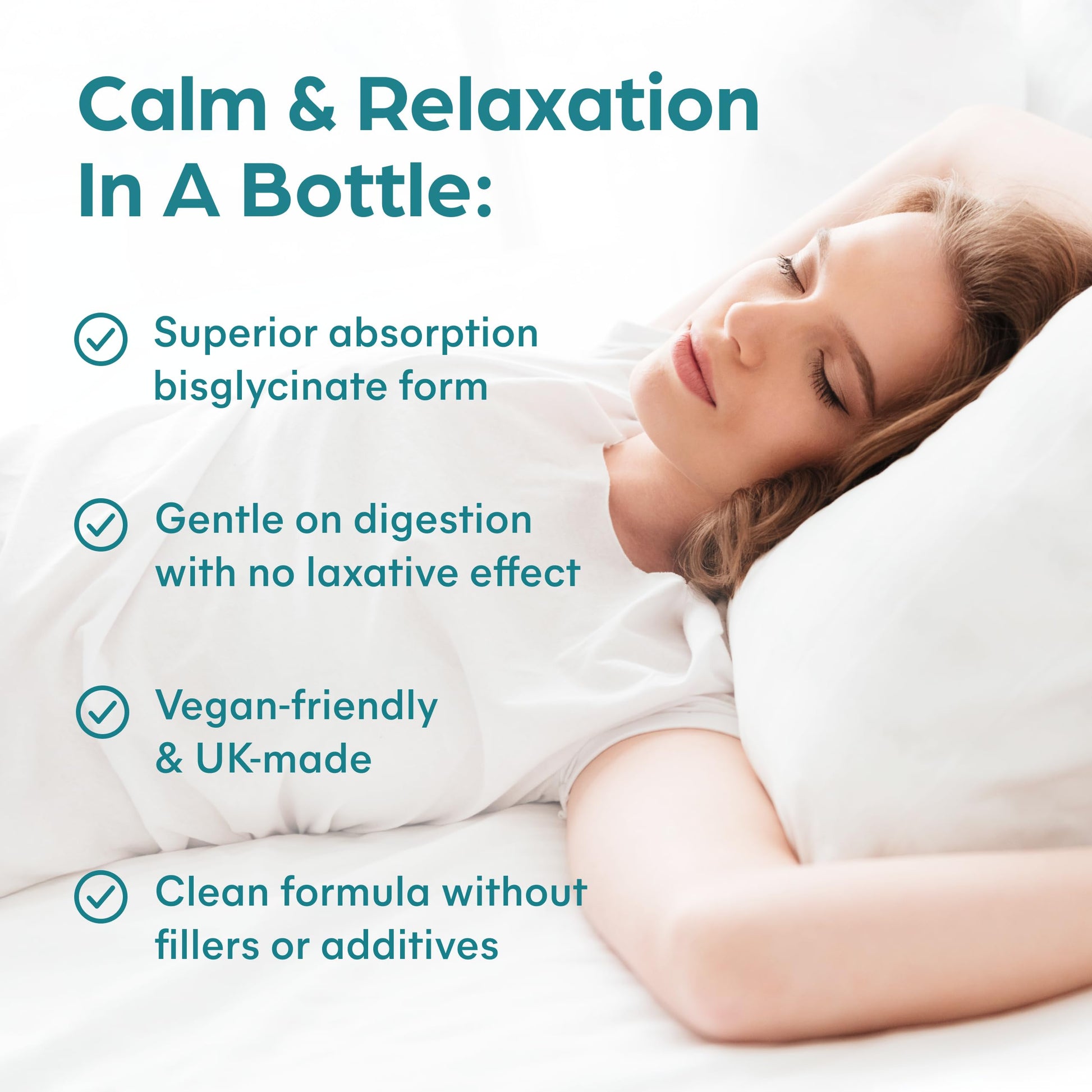 BRITISH CRAFTED QUALITY - Manufactured in the UK under strict GMP standards, each serving provides 1250mg of magnesium bisglycinate (250mg elemental magnesium) in clean, size 00 capsules.