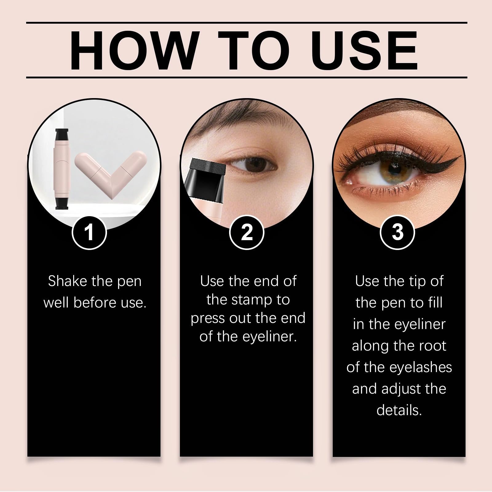 1.The eyeliner stamp provides smudge-proof results that last.2.The winged eyeliner stamp creates sharp, symmetrical wings easily.