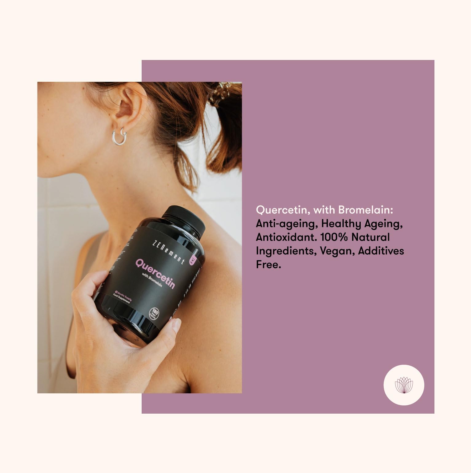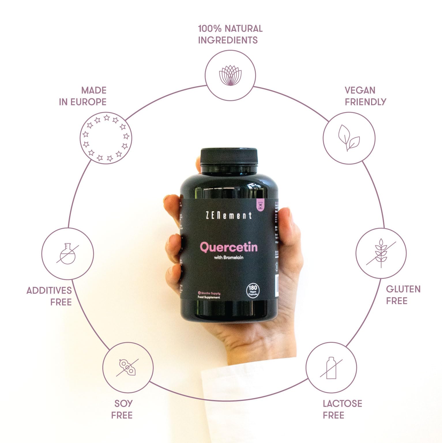 Quercetin 500mg, with Bromelain, 180 Capsules | Anti-ageing, Healthy Ageing, Antioxidant | 100% Natural Ingredients, Vegan, Additives Free | Zenement