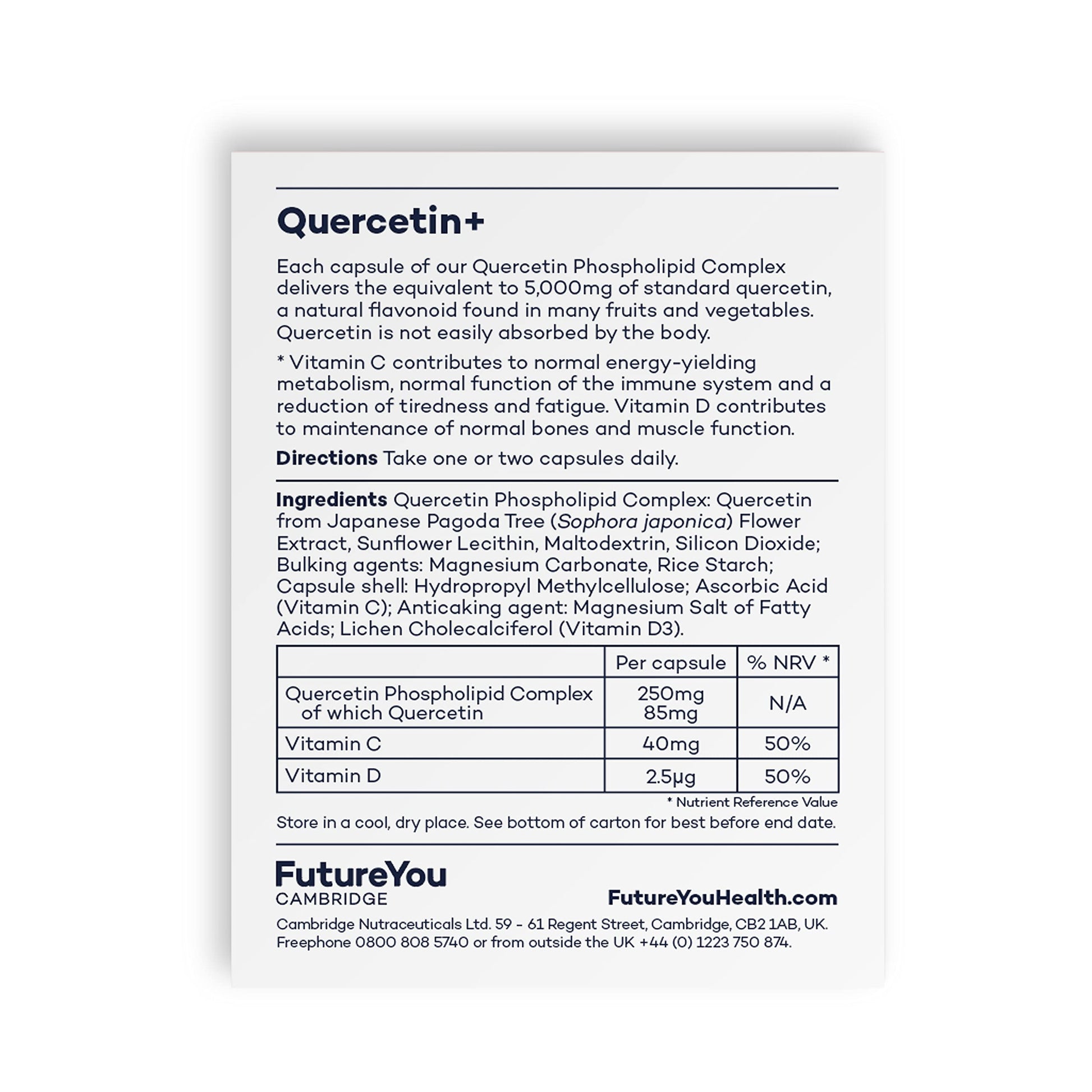 Quercetin+ Quercetin Phospholipid Complex with Vitamins C & D3 - Highly Bioavailable Sunflower Formulation - 28 Day Supply - 28 Vegan Capsules - Developed by FutureYou Cambridge, UK