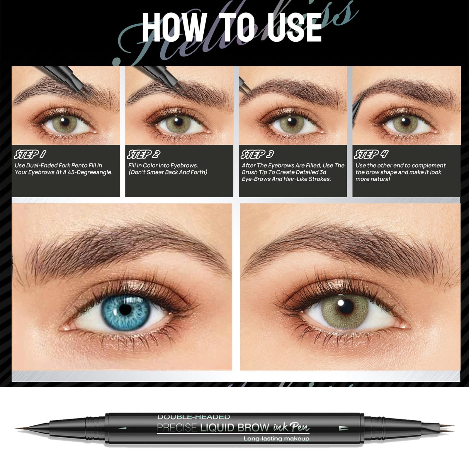 QUIWEN Eyebrow Pencil with Brow Brush, 2-in-1 Eye Brow Pencils for Women with Micro-Fork-Tip & Precise Brush-Tip Create Natural Hair-Like Brows, Long-Lasting Waterproof Double Ended Eyebrow Pen Brown