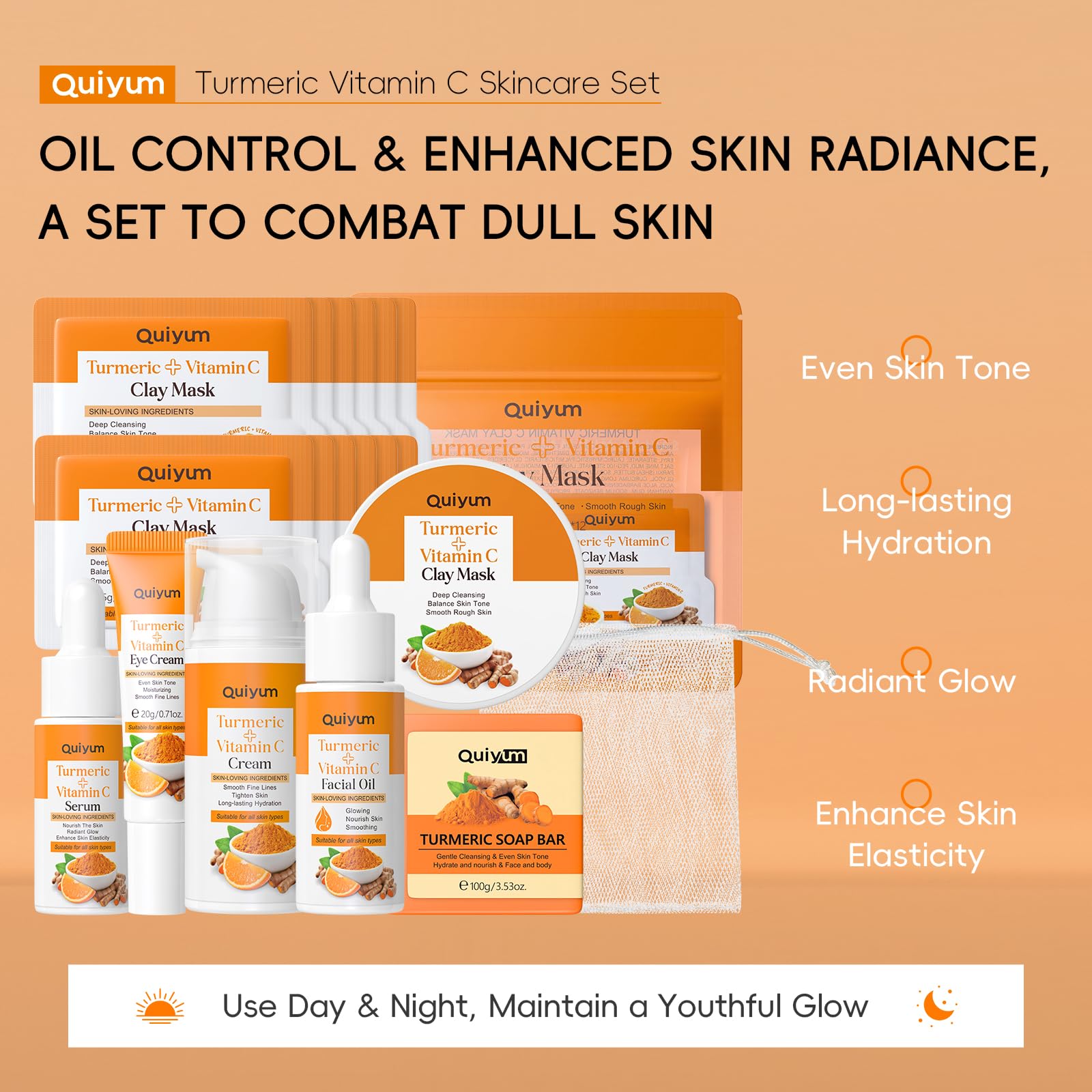 Quiyum Turmeric Vitamin C Skincare Set – Skincare Routine for Glowing and Healthy SkinExperience Quiyum Turmeric Vitamin C Skincare Set, crafted with premium natural ingredients like turmeric and Vitamin C to nourish, cleanse, and repair your skin. Perfect for daily or targeted care, this set promotes fresh, smooth skin and a glowing complexion.