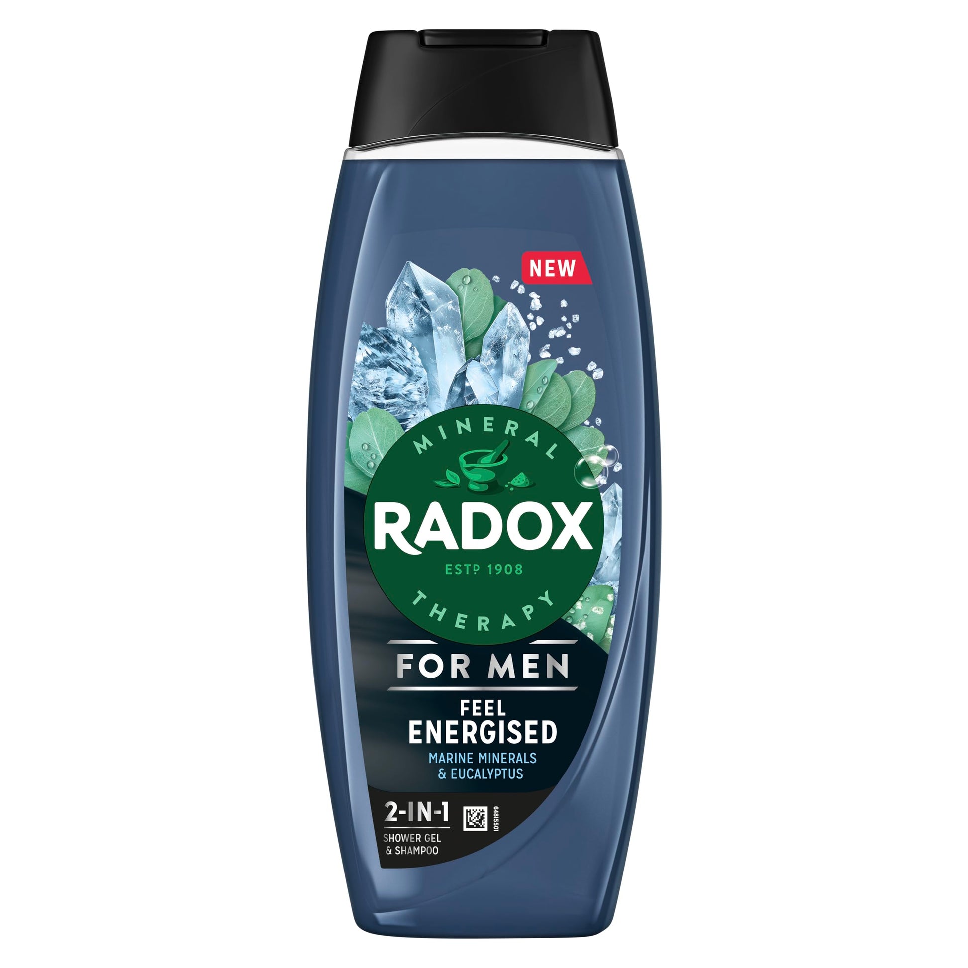 - RADOX Mineral Therapy Feel Energised 2-in-1 Shower Gel & Shampoo for Men provides a cooling shower experience that awakens your senses