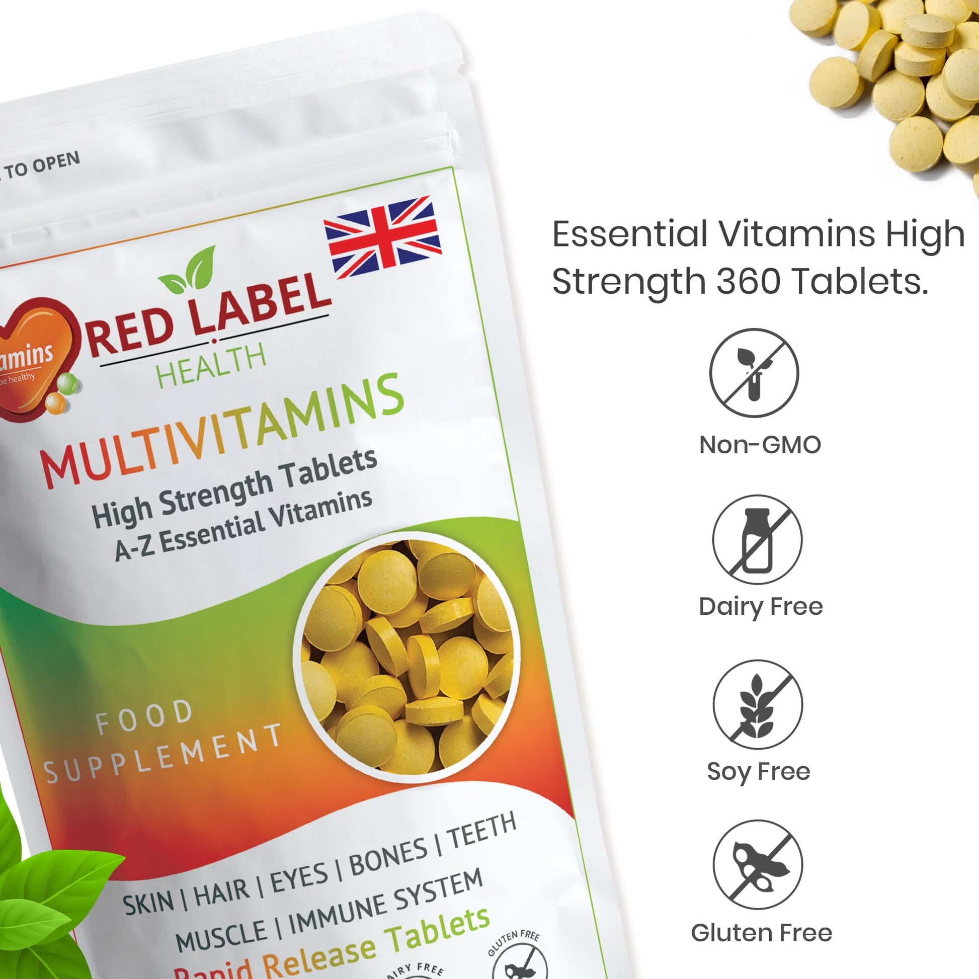 Red Label Health Multivitamin Tablets for Men & Women, 90 Tablets (3 Months Supply), A-Z Multivitamins, Essential High Strength Supplement for Immune Support, One a Day Multivitamins