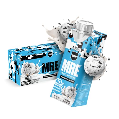 REDCON1 MRE Ready to Drink Protein Shakes, Cookies & Cream - Lactose + Whey Free RTD Protein Made with Real Whole Food Protein Blends - Keto-Friendly and Easy to Digest Nutritional Shake (12 Pack)