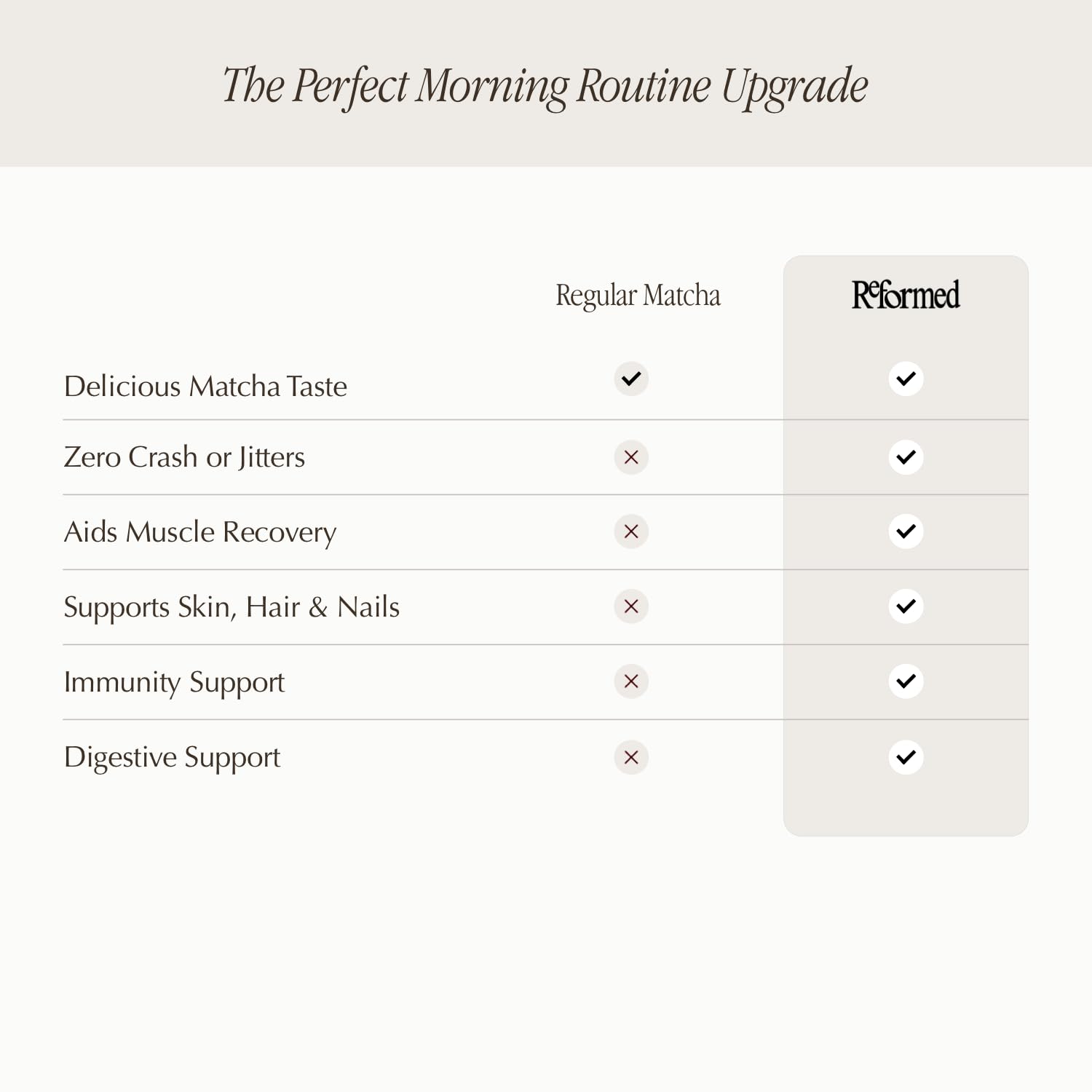 Reformed combines pure Ceremonial-Grade Matcha with the highest-grade Collagen peptides & adaptogens. It supports skin & hair rejuvenation, helps to refine your silhouette and promotes a calm & focused mind.More Info